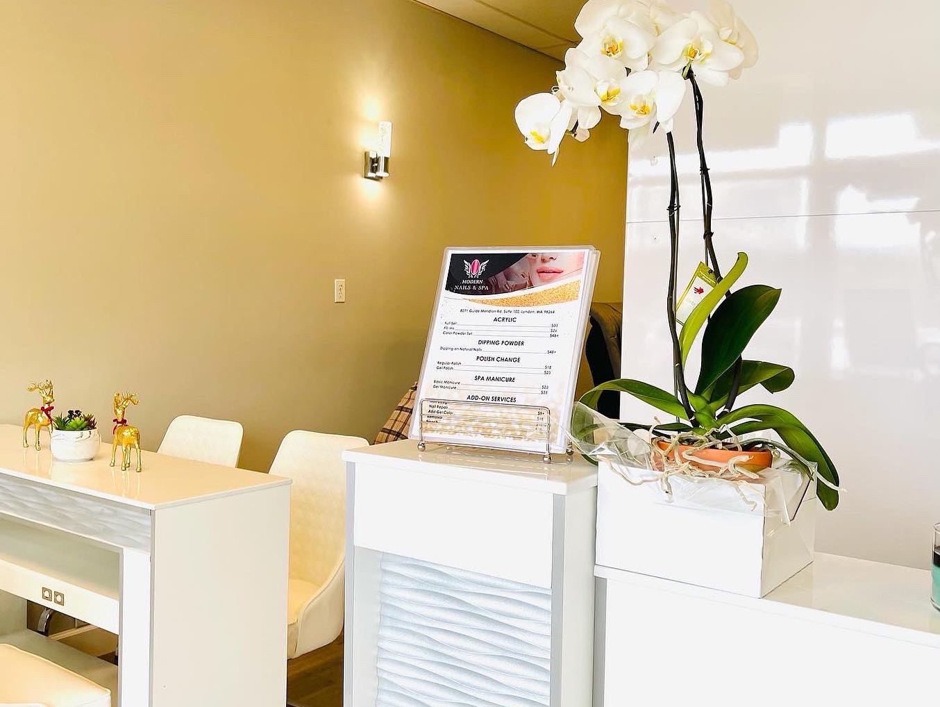 Modern Nails & Spa is a welcoming and superior nail salon that provides exceptional services. Customers consistently praise the friendly staff who personalize each appointment to meet individual needs. The salon's artistic skills are unparalleled, with clients raving about intricate nail art designs and high-quality acrylic sets at reasonable prices. The salon is very well taken care of, clean, smells good, and is very organized. The nail techs are detailed, gentle, and precise, ensuring a satisfying experience. Whether it's pedicures, full sets, or eyebrow waxing, Modern Nails & Spa delivers a superior nail salon experience that leaves customers extremely happy and eager to return. Many clients find that they can go three weeks between fills without issues and often receive helpful advice on design options. Overall, it is a place customers will definitely keep coming back to.