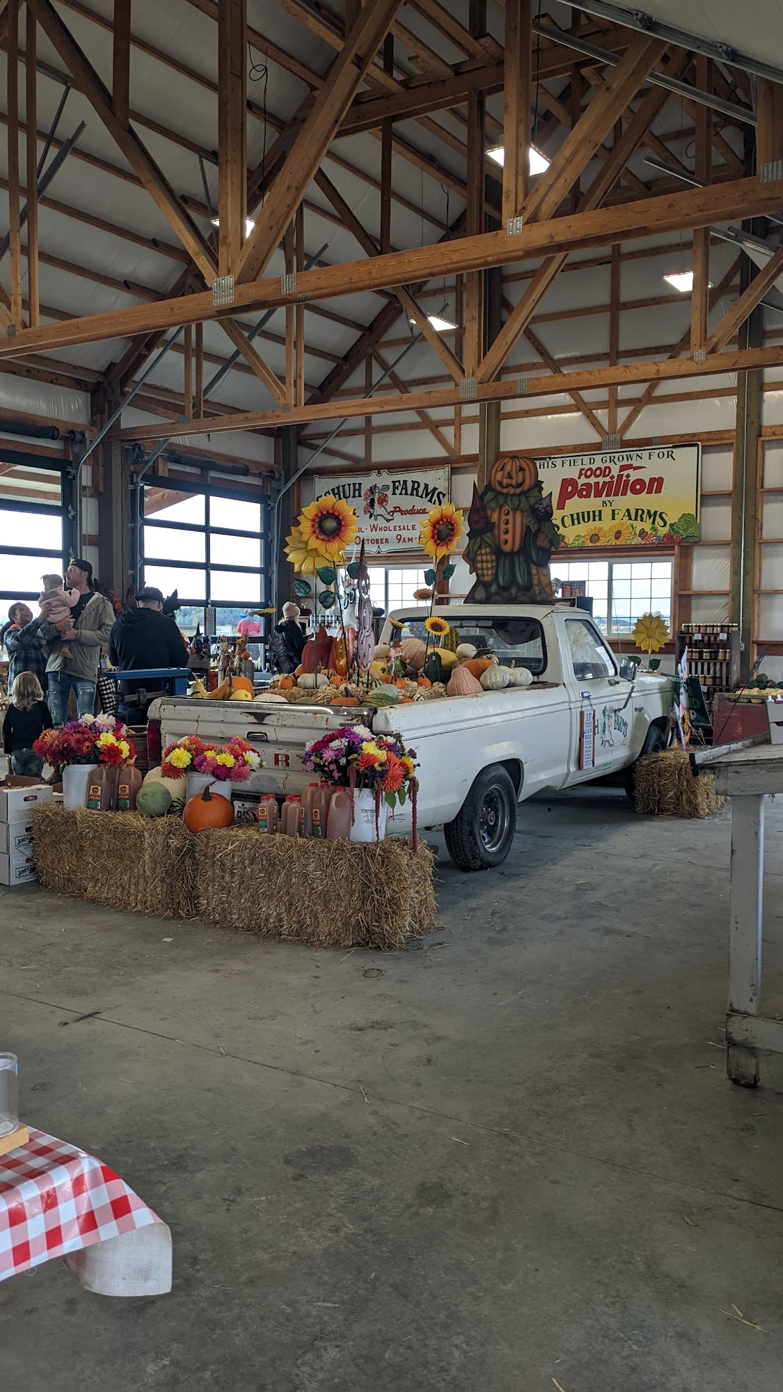 Schuh Farms is a friendly, family-oriented farm that offers a variety of seasonal products and activities. Visitors can enjoy a large selection of pumpkins in many colors, shapes, and sizes, including warty, bumpy, smooth, and unique gourds. The farm also features seasonal fruits and vegetables like corn and strawberries, along with baked goods and other local products. In addition to produce, the farm has a gift shop, a coffee stand, and a market, providing a pleasant shopping experience. During the fall, Schuh Farms is a popular destination for families, with activities such as feeding chickens, picking pumpkins, and riding a tractor to the pumpkin patch. The farm is well-maintained and clean, with porta potties available for convenience. There is also a small area with roosters and goats, adding to the farm’s charm. Kids can enjoy a bouncy house and inflatables, and the farm keeps track of the biggest pumpkins of the season. Overall, Schuh Farms is a great place to visit for seasonal fun, fresh local products, and a warm, welcoming atmosphere.