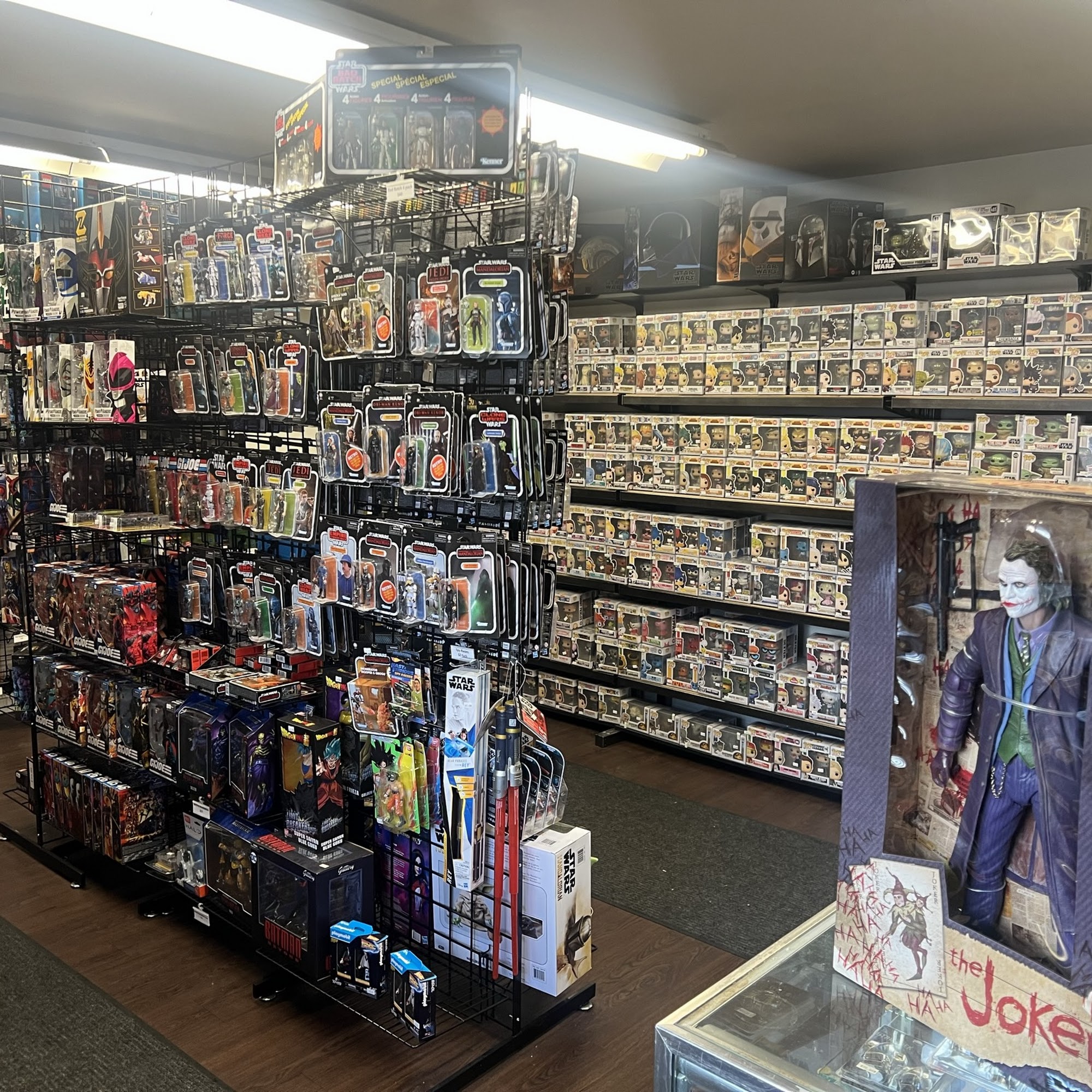 A toy store for the collector. We have over 100 Star Wars figures to choose from, 200+ Funko Pops, Transformers, Power Rangers, Marvel Legends and more at retail prices. We me may be small, but we have great prices! And all standard size Funko include a soft protector.