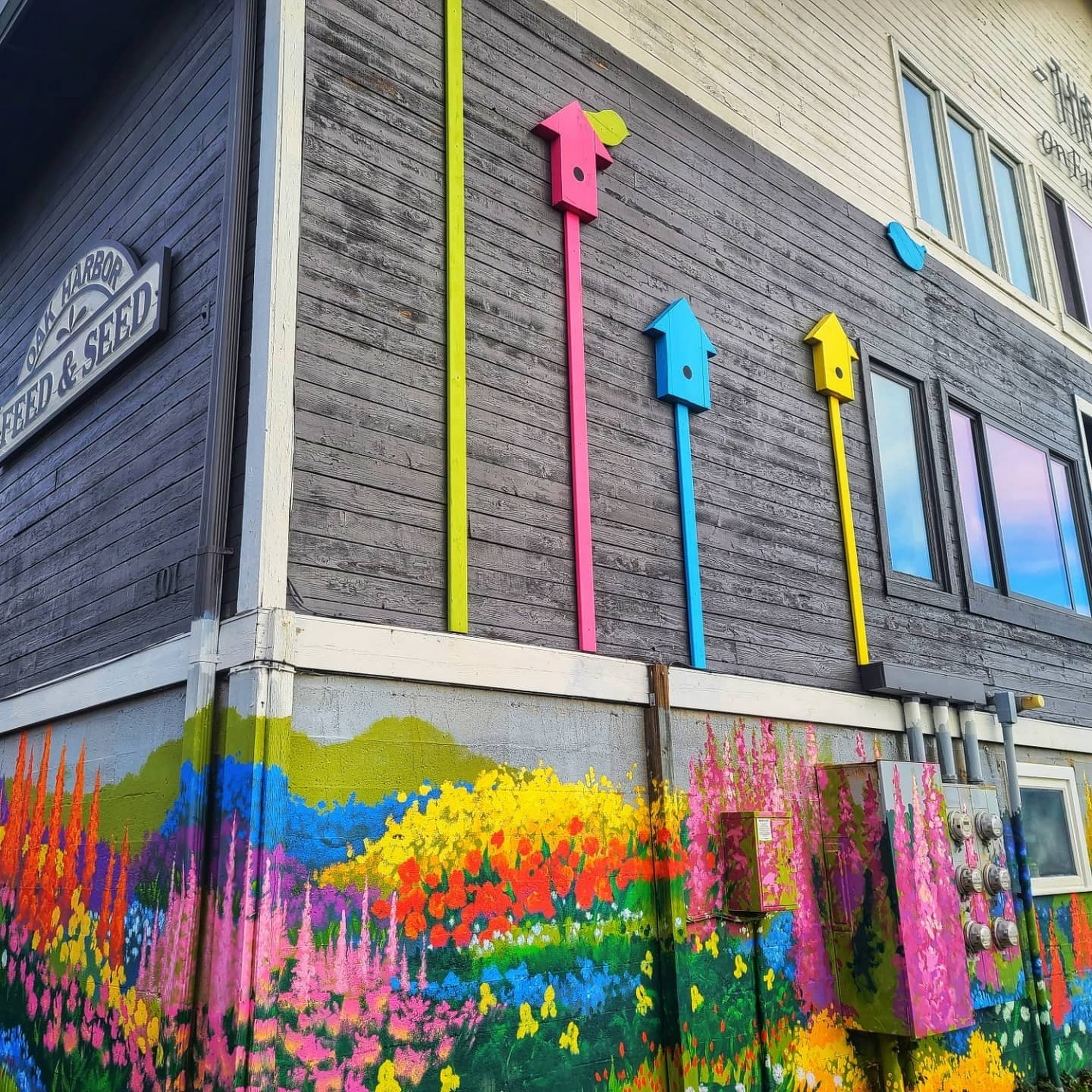 Follow the floral mural and you'll be at the door of Trippy Whidbey. Here we make high quality hand dyed clothing in a range of color combinations and patterns for super trippy person to the not so trippy person. Stop in for your next tie dye clothing.