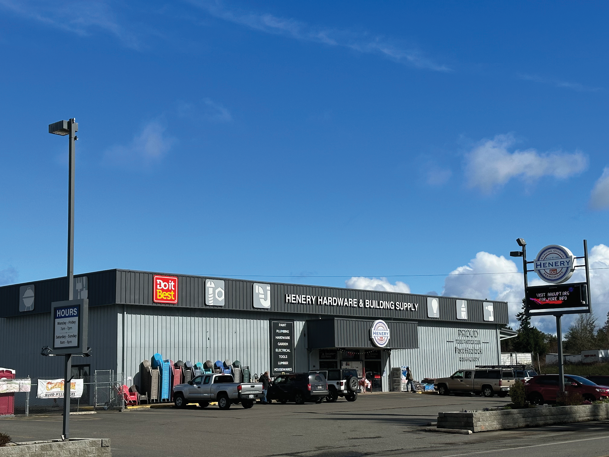 Henery Hardware & Building Supply is a friendly, well-stocked local hardware store that serves the community with a wide range of building materials, tools, lawn and garden supplies, paint, electrical, and plumbing products. Customers appreciate the organized shelves and the variety of items, often finding more options than larger stores like Home Depot. The store features a Lumber yard and offers competitive pricing on popular products. The staff is highly knowledgeable, friendly, and always ready to help, often going above and beyond to answer questions and assist with projects, no matter how big or small. Many customers have expressed gratitude for the helpfulness of staff members, who seem to understand their needs quickly and work to get perfect matches for paint and other supplies. The welcoming atmosphere makes customers feel appreciated and confident, even when tackling their own DIY projects. Overall, Henery Hardware & Building Supply is praised for its excellent customer service, helpful staff, and convenience, making it a trusted resource for those in the area needing hardware, building supplies, or garden materials.
