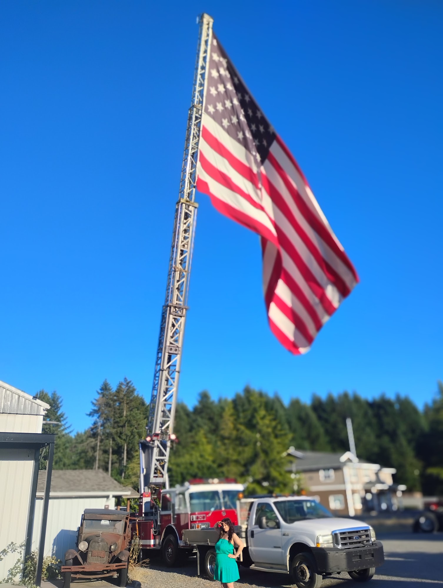 All I got to say about this place is.. you gotta love whoever owns this place cuz who puts a huge flag that you don't see anywhere else as far as how big it is attached to a firetruck crane!? This place does! I enjoy passing thru it to go to town, pretty sure they are die hard American Company so I love this place! U.S.A.!