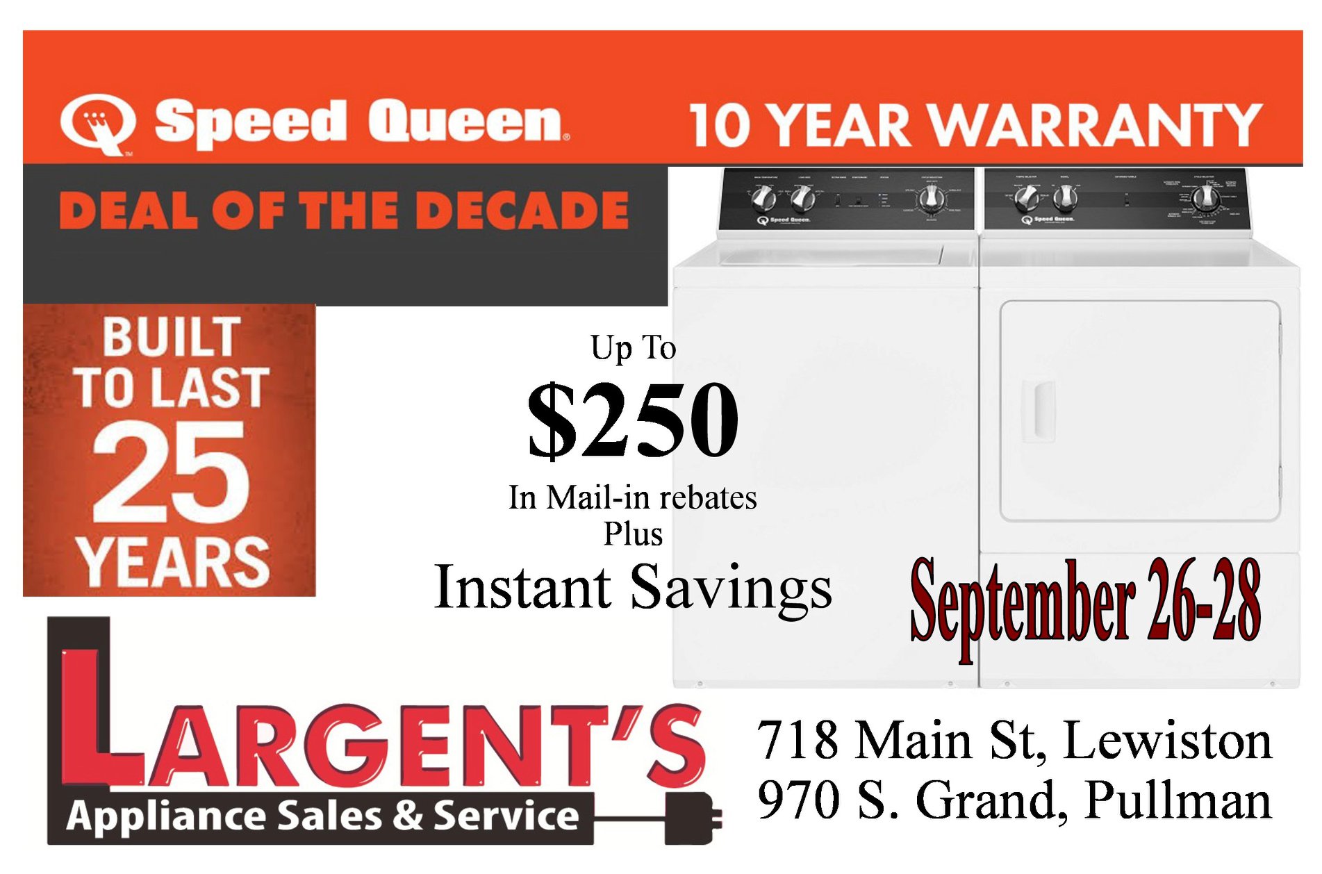 As part of a four-generation family owned business, we pride ourselves on offering personalized customer service and a wide selection of high-quality appliances. Our showroom at 970 S Grand Ave features top brands in refrigeration, cooking, dishwashing, and laundry appliances. Our knowledgeable staff is dedicated to helping you find the perfect fit for your home and lifestyle. We offer professional delivery, installation, and haul-away services, along with factory-trained technicians for maintenance and repairs. At Largent's, you're more than a customer—you're part of our family. Experience the difference of shopping local with us.