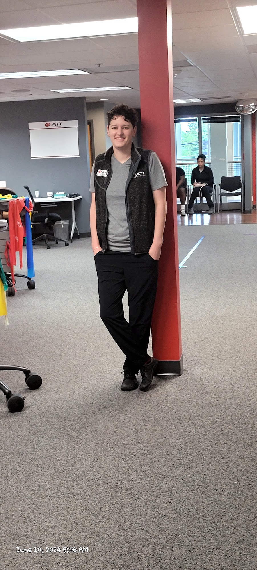 Physical therapy is a real challenge for my worn out body! The therapists there are to teach you and work with you, which they do. The room is open and congenial. Lots of equipment.