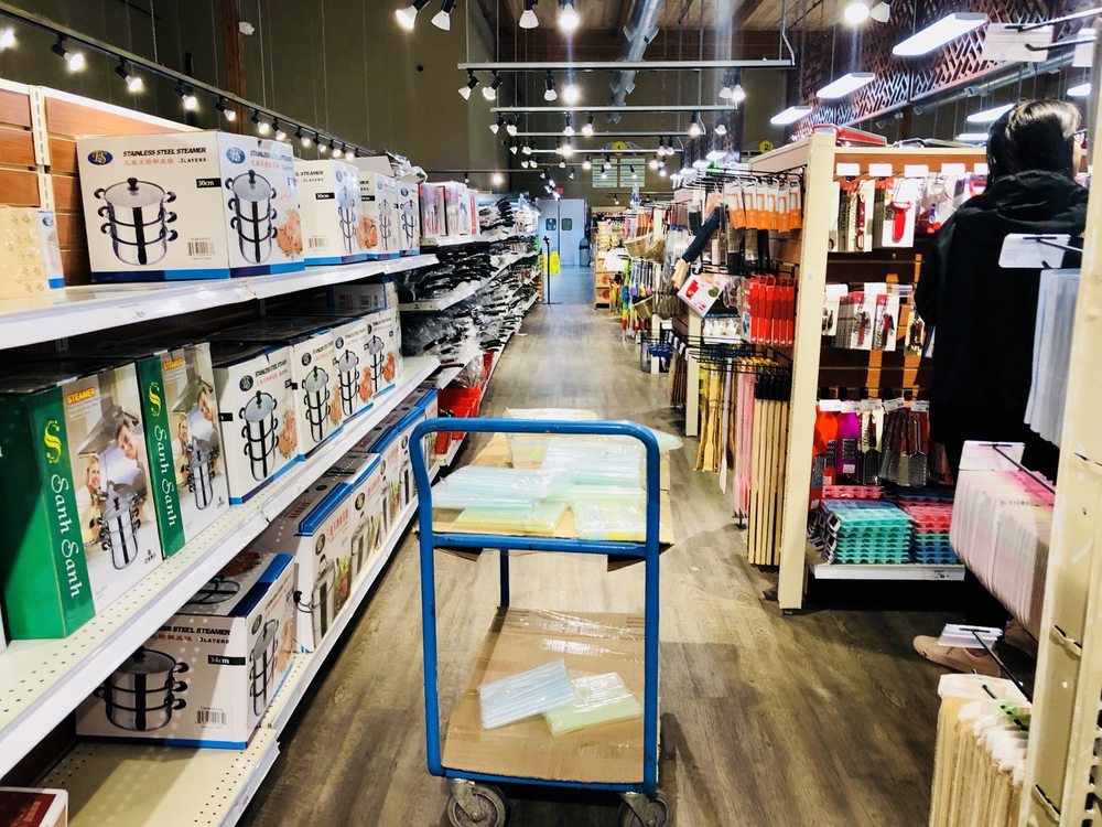 Huge, well-lit and well-maintained store, plenty of parking, plenty of variety for many Asian cuisines. Large selection of fresh produce and live seafood.