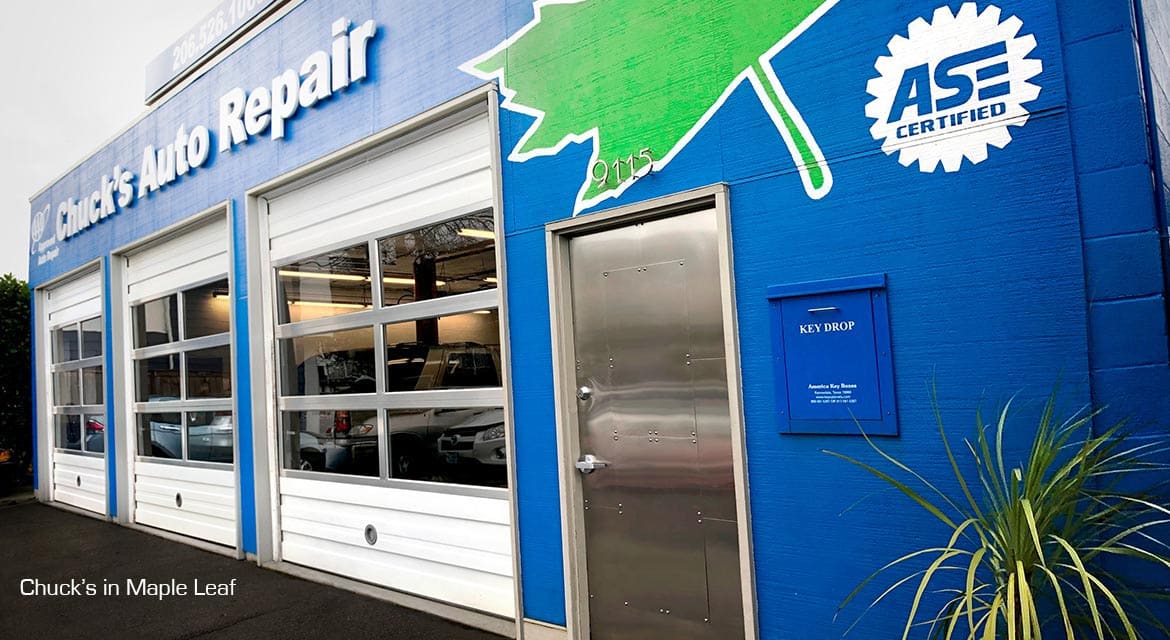 At Chuck?s Auto Repair, keeping you safe while you?re on the road is our top priority. But we also want to make sure you have a great time while you?re with us. To ensure both, we hire only well-qualified mechanics and front desk service agents whose passions extend beyond nuts, bolts, tires, belts, hoses, engines and everything else automotive; we hire people who truly care about the individuals and families who entrust your vehicles (and your lives while aboard your vehicles!) to us. When we repair your vehicle, we install parts that meet or exceed OEM standards. Our goal: to make every repair as safe and reliable as if you were driving off the showroom floor for the first time. We service Foreign and Domestic vehicles along with German models too. Here is a list of the major brands we repair: Subaru, Honda, Toyota, Acura, Lexus, Cadillac, Chevrolet, Saturn, Ford, Chrylser, Jeep, Dodge, Nissan, Mazda, Volkswagen, Audi, BMW and Volvo. We are conveniently located on Roosevelt Way, just south of Northgate Mall, on the east side of I-5 and north of the University District. Local communities in our area are Maple Leaf, Laurelhurst, Wedgwood, Pinehurst, View Ridge, Greenlake, Northgate and Ravenna. We are available from 8am - 6pm Monday through Friday. We are also an Emission Certified Repair facility. We strive to provide our customers with the best car repair experience possible. We even stand behind our work by giving a 24 month / 24,000 mile warranty on all parts and labor. So come on in and check us out! I think you 'll like us!