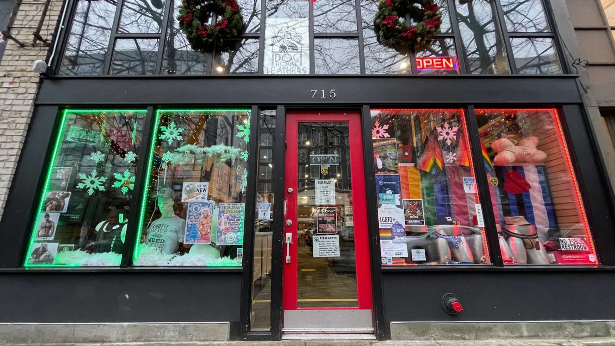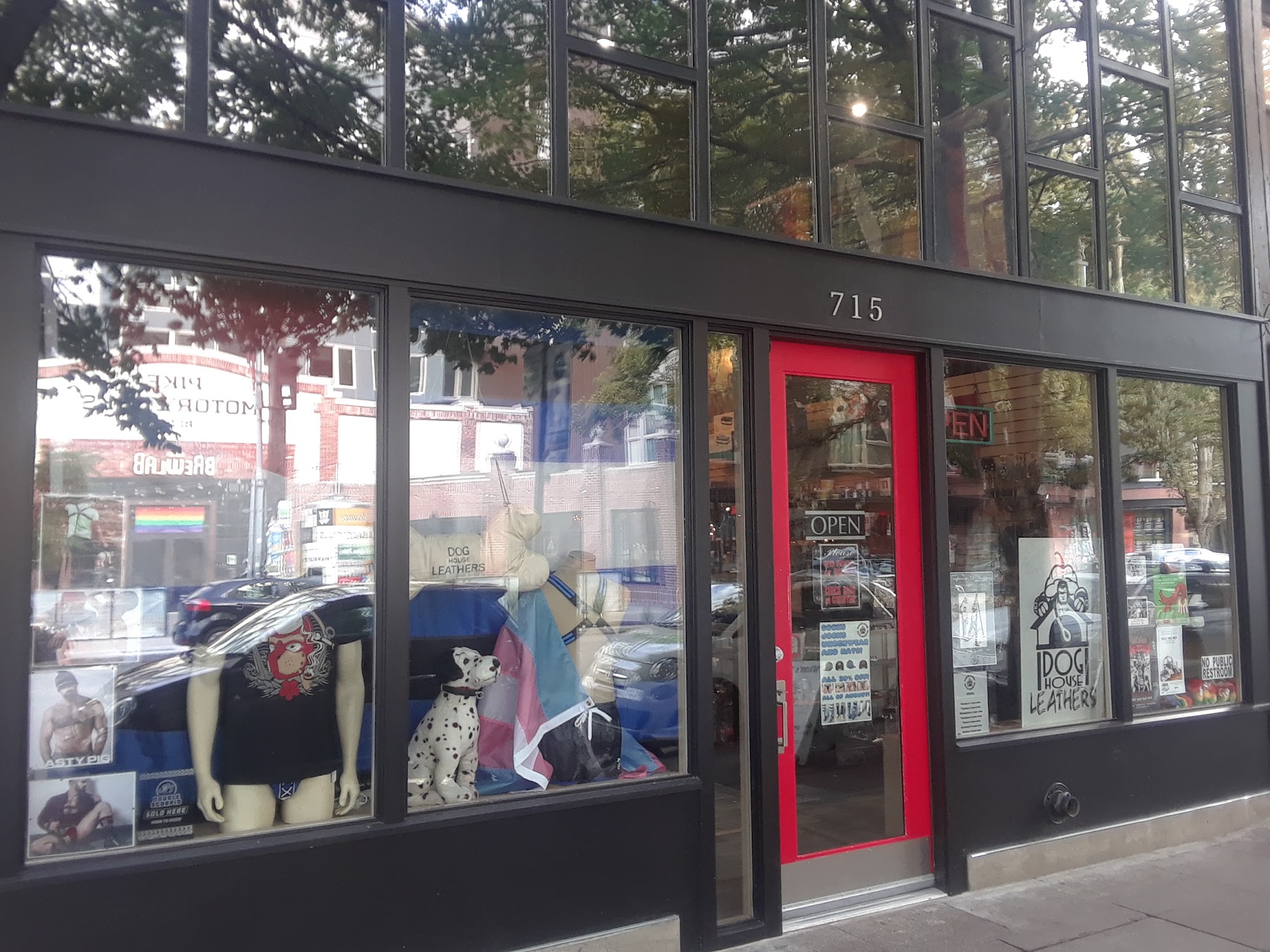 Doghouse Leathers is the largest fetish store in the Pacific Northwest, serving a diverse community from Canada and the United States. We craft our own leathers right here in store, and carry a diverse range of fetish apparel from Nasty Pig, Cellblock 13, along with a wide array of lubes, toys, leathers, and a wide assortment of gear for pups, pigs, Daddys, bears, Sirs, and subs. Be sure to check out our chastity devices, and electro play items too. We also carry one of the largest selections of floggers made right here in our local community! Come on in and bring a friend, we'd love to see you!