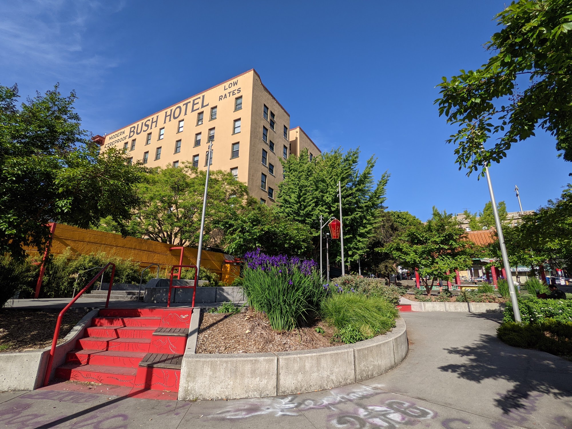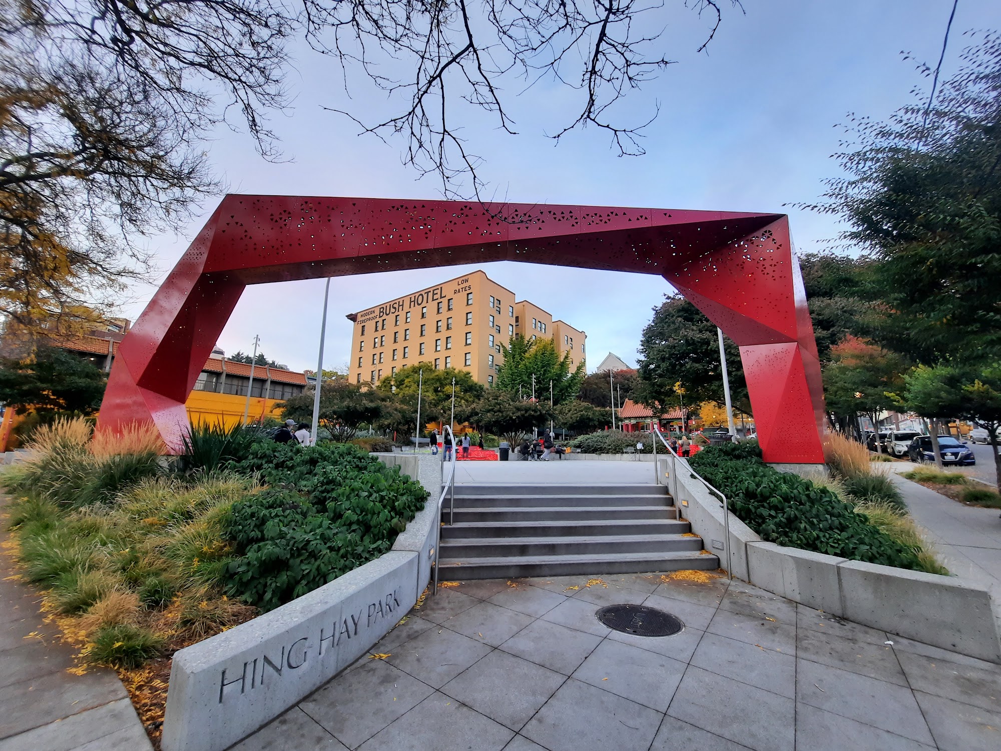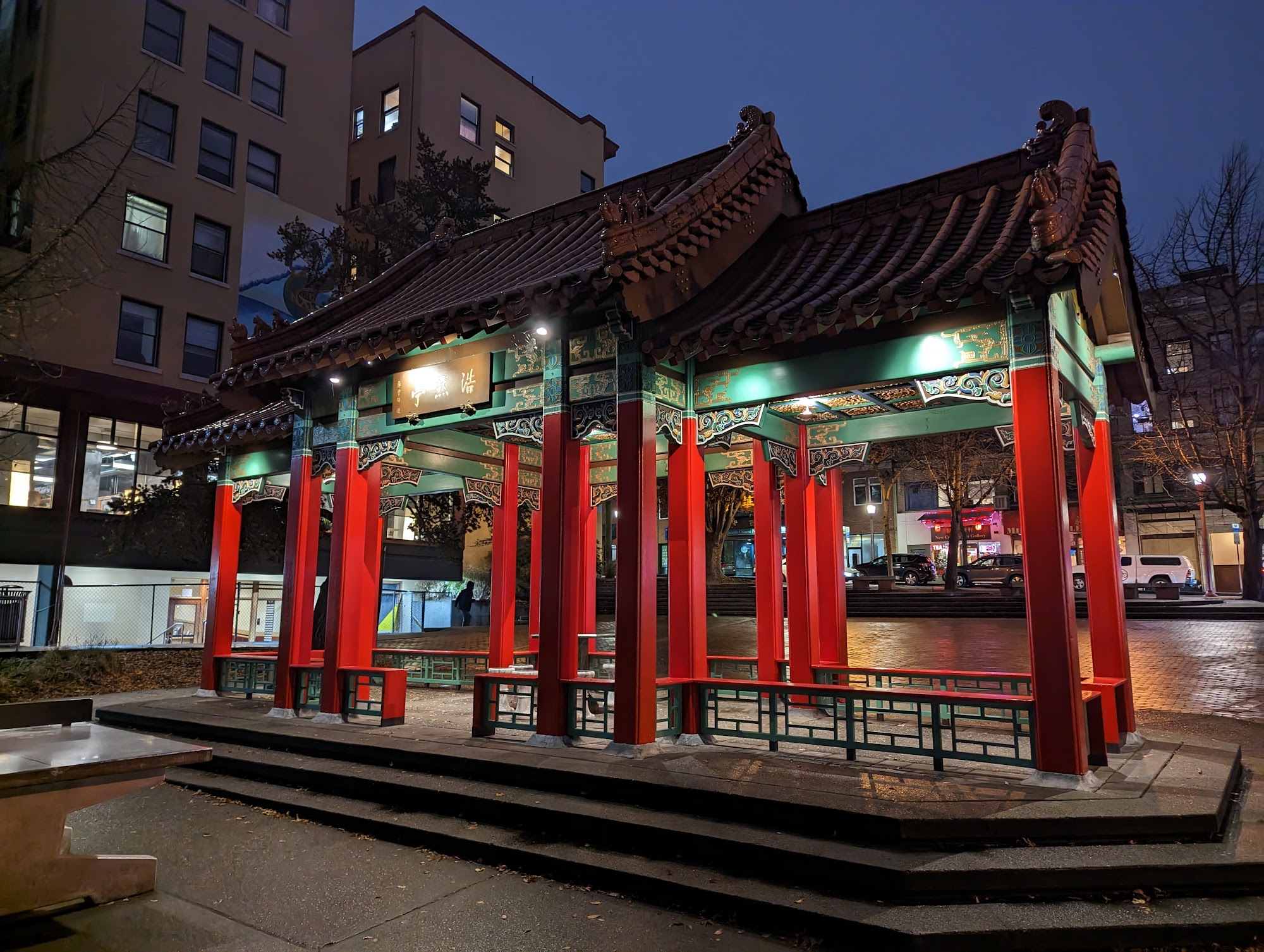 Hing Hay Park is a beautiful, Asian-themed park that is free to visit and offers a friendly, lively atmosphere. It is popular with many elderly Chinese people who gather to play ping pong, chess, or chat. The park is lively with buskers and Chinese songs played in the background. It features picnic tables, some covered, and benches for relaxing. The park is dog-friendly with several dogs seen around. The pavilion is a favorite spot, and nearby places like Yi Fang and Fuji Bakery serve great snacks and baked goods. Visitors can enjoy the vibrant community, watch sports, and take photos, making it a safe and clean space for relaxation and socializing.