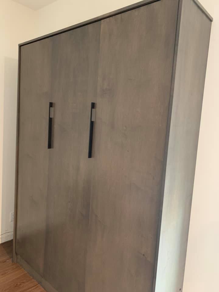 The queen Murphy bed is beautiful. Exactly what we wanted. Joe installed it for us on San Juan Island. Above and beyond service and a wonderful person to work with. His small business is wonderful. We bought a small bench that fits perfectly in front. When we take the cushions off it folds overtop.