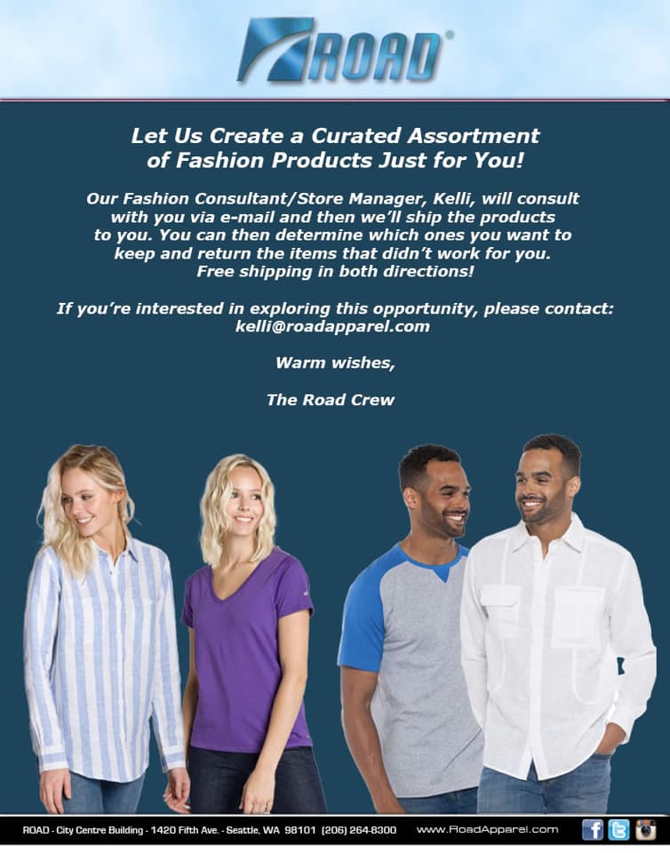 Exclusive Apparel Boutique in Downtown Seattle featuring quality fashion apparel & accessories for men and women. ROAD is also an authorized retailer for the ground-breaking Ably Apparel line that features Filium Technology that causes all natural fabrics to shed liquids, resists stains and odors. As a result, Filium activated fabrics require less laundering.