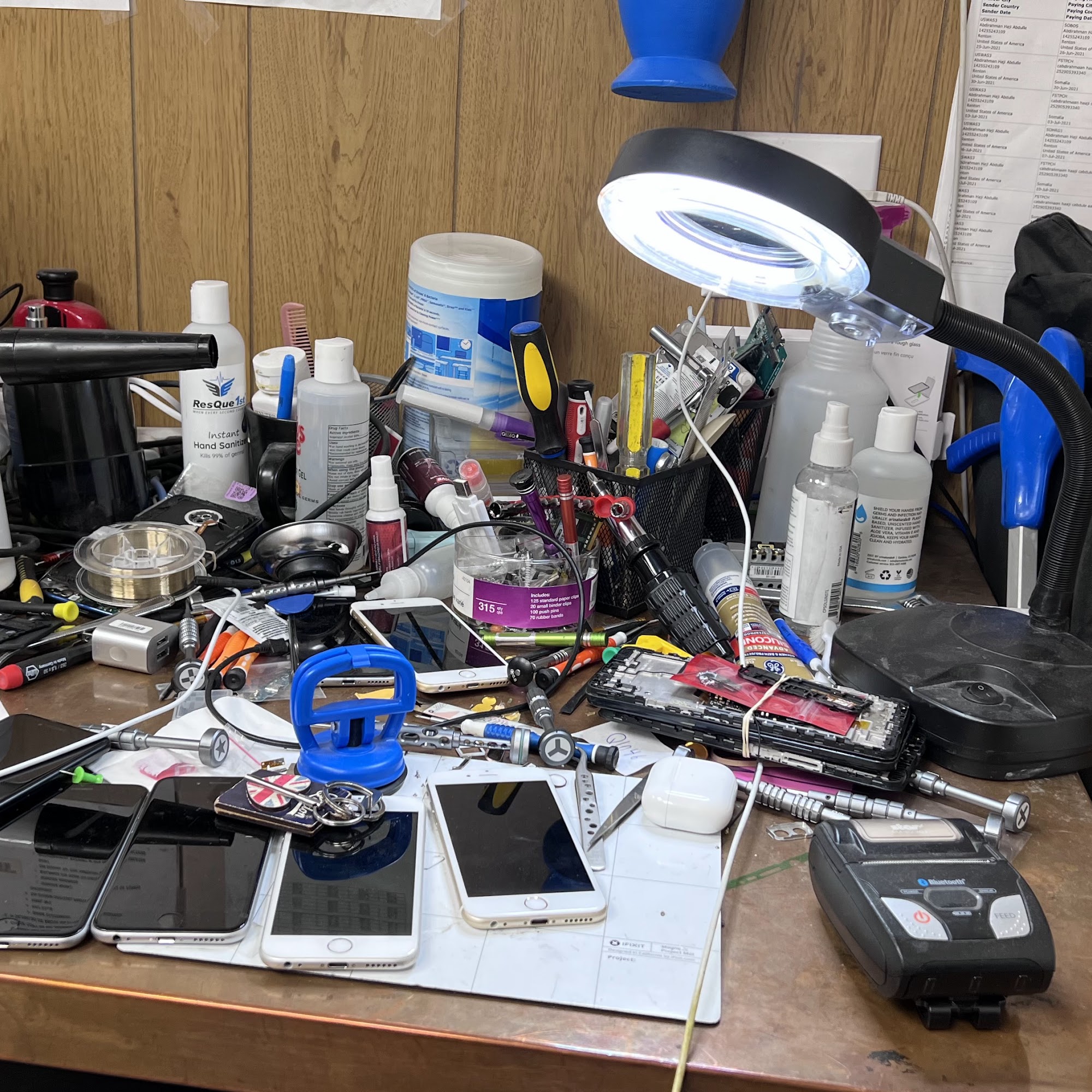 We repair phones and small electronics such as tablets and laptops