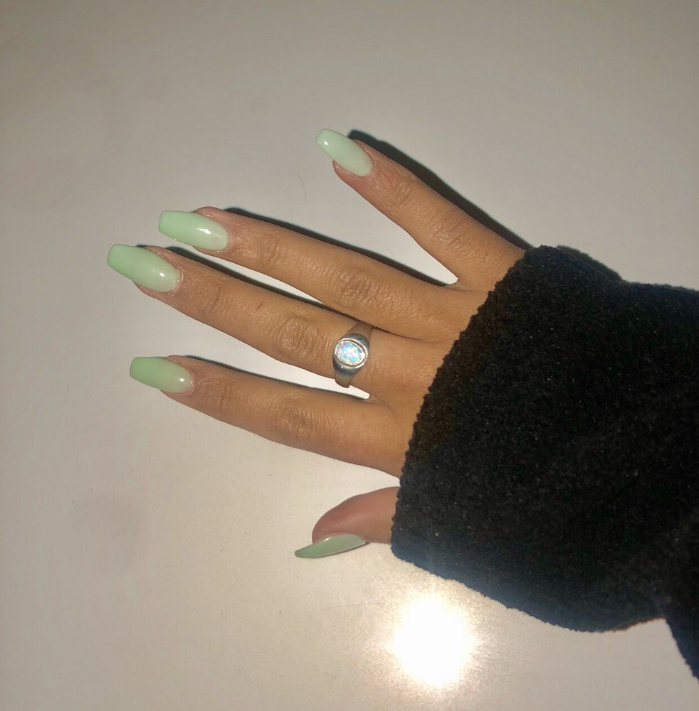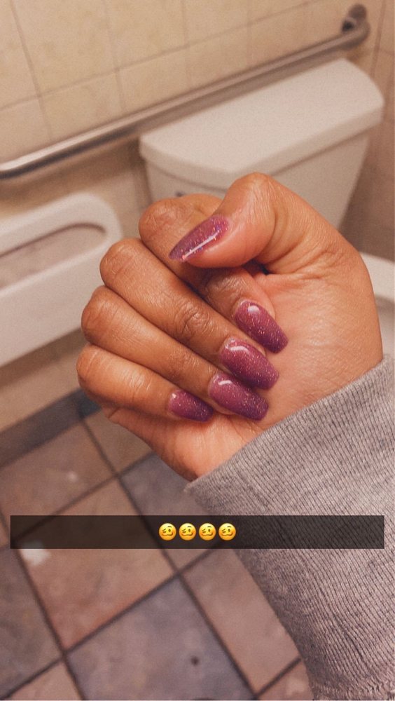 Not good with acrylic work. They didn't look terrible, but you can tell they mostly do manis and pedis. My acrylic went over the cuticle and was very thick by the cuticle and thin at the top of the nail. They were nice and gave us water.