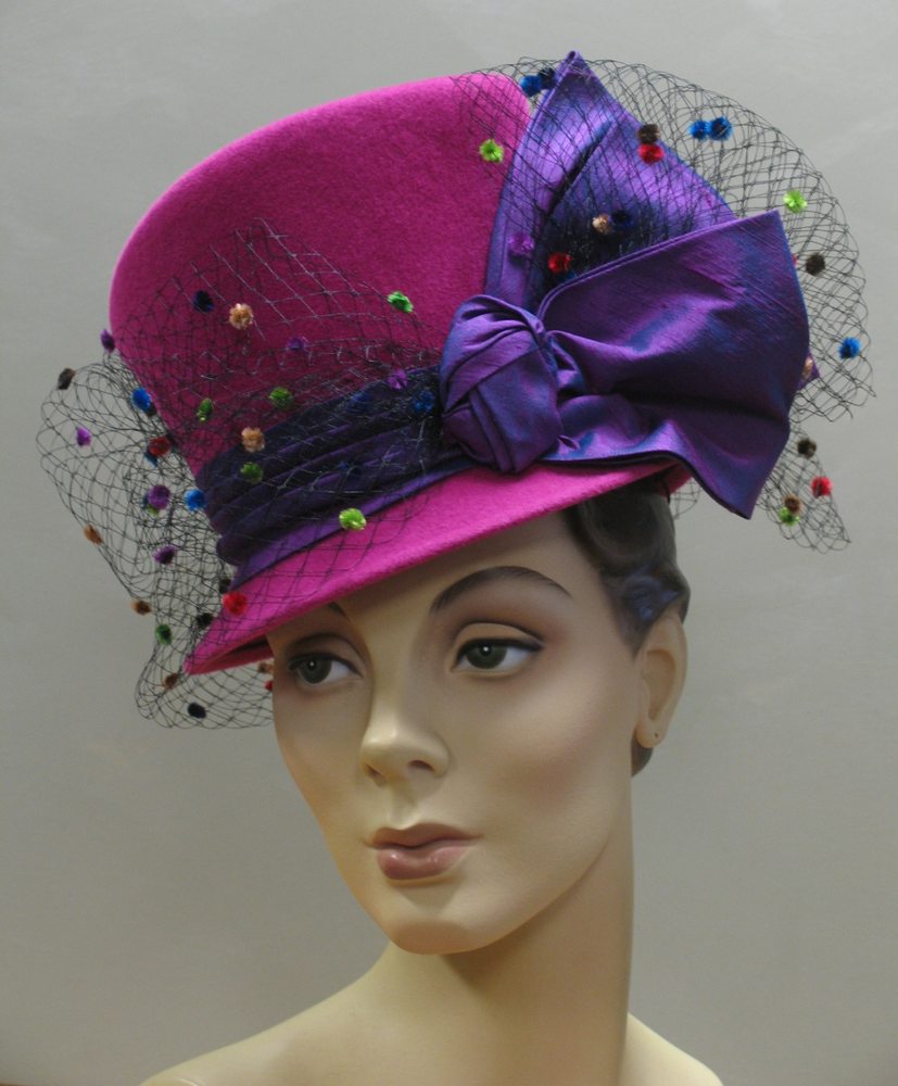 Designer of women's fashion hats. Custom millinery, Classes and workshops for millinery design and construction. We have women's ready to wear hats available in our retail area. Fall & Winter Felt Hats - Spring Summer Straw Hats - Derby & Wedding We make hats for men by custom order.