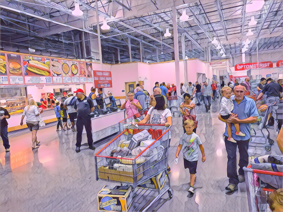 Great variety of products at competitive prices . Enjoy bulk purchases of paper goods and drinks in particular. The cafe "$1.50" is an added attraction!
