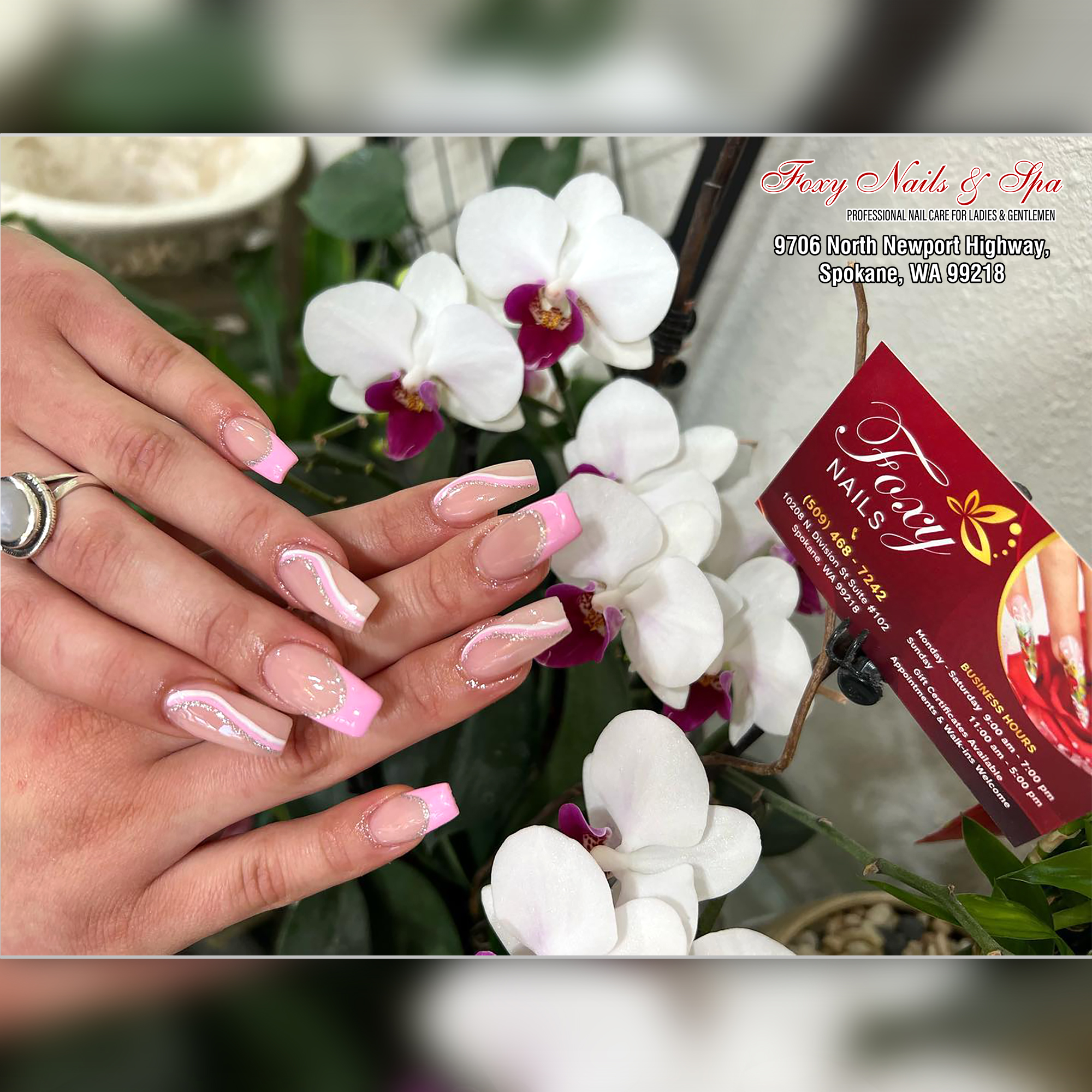Located conveniently in Spokane, WA 99218, our nail salon is proud to be one of the best nail salons in the area. Foxy Nails is a unique nail salon that offers Manicures, Pedicures, Facial, and waxing services. Our nail salon provides a welcoming and luxurious space for clients to feel truly pampered. We are dedicated to bringing top hygiene and the latest in cosmetic nail care services. You will experience a unique atmosphere where you can relax and unwind with friends.