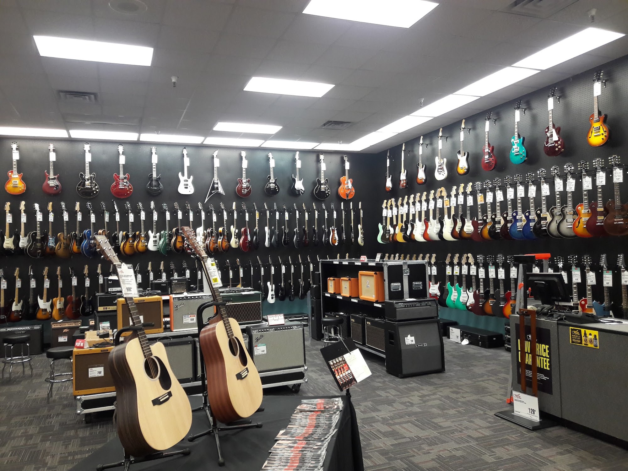 Service is spotty, based on how many people are shopping. I would regard this place as understaffed based on foot traffic. Expect your brand new guitar to be used as all of their stock is hanging on a wall for anyone to play