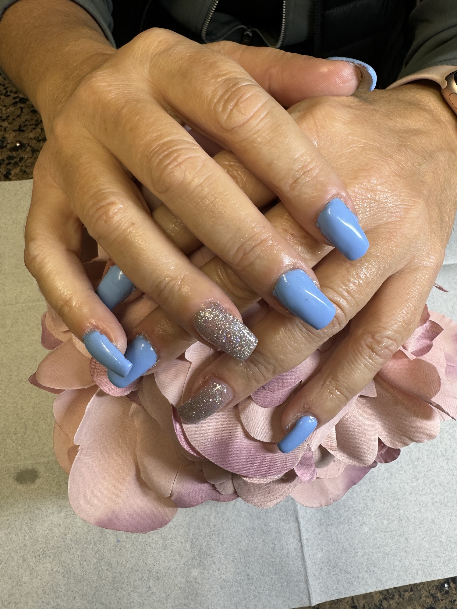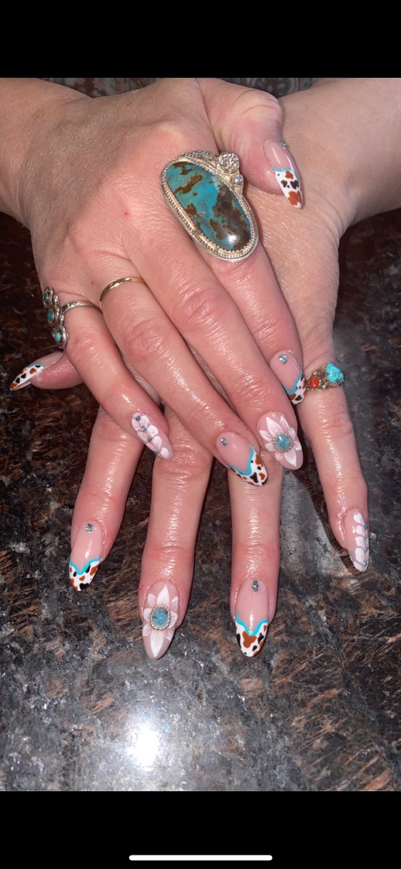 I use American made Tammy Taylor acrylic, hand file , sculpt every nail (no glue on tips) sanitize everything. I also offer pedicures and paraffin manicures. Appointments only and I speak English 509-599-7828