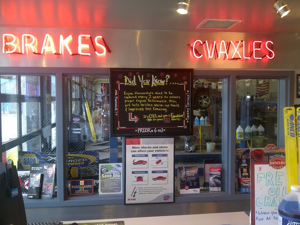 Prior's Auto Care is a trusted automotive service shop known for its quick, professional, and affordable repairs. Customers appreciate the transparent and honest approach of the staff, who focus on providing necessary services without pushing unnecessary upgrades. The technicians are qualified and committed to high ethical standards, ensuring that each vehicle receives proper care. The shop is praised for its friendly environment, with staff members giving off "dad vibes" and making customers feel comfortable and valued. Many reviews highlight the fast service, whether for oil changes, brake repairs, or inspections, often completed at a reasonable price. The shop's honesty extends to clear communication about what repairs are needed and what can wait, helping customers make informed decisions. They are accommodating with scheduling and customer requests, including accepting discounts like Groupon or bringing in own parts for specific services. The staff also demonstrates kindness by offering small touches such as cold water and discount cards, which enhances the overall customer experience. Customers report improvements in vehicle performance after repairs, and some even note better gas mileage following service. Overall, Prior's Auto Care is seen as a reliable, friendly, and honest place to get automotive repairs, with a team that feels like a big family dedicated to making each visit a positive one.