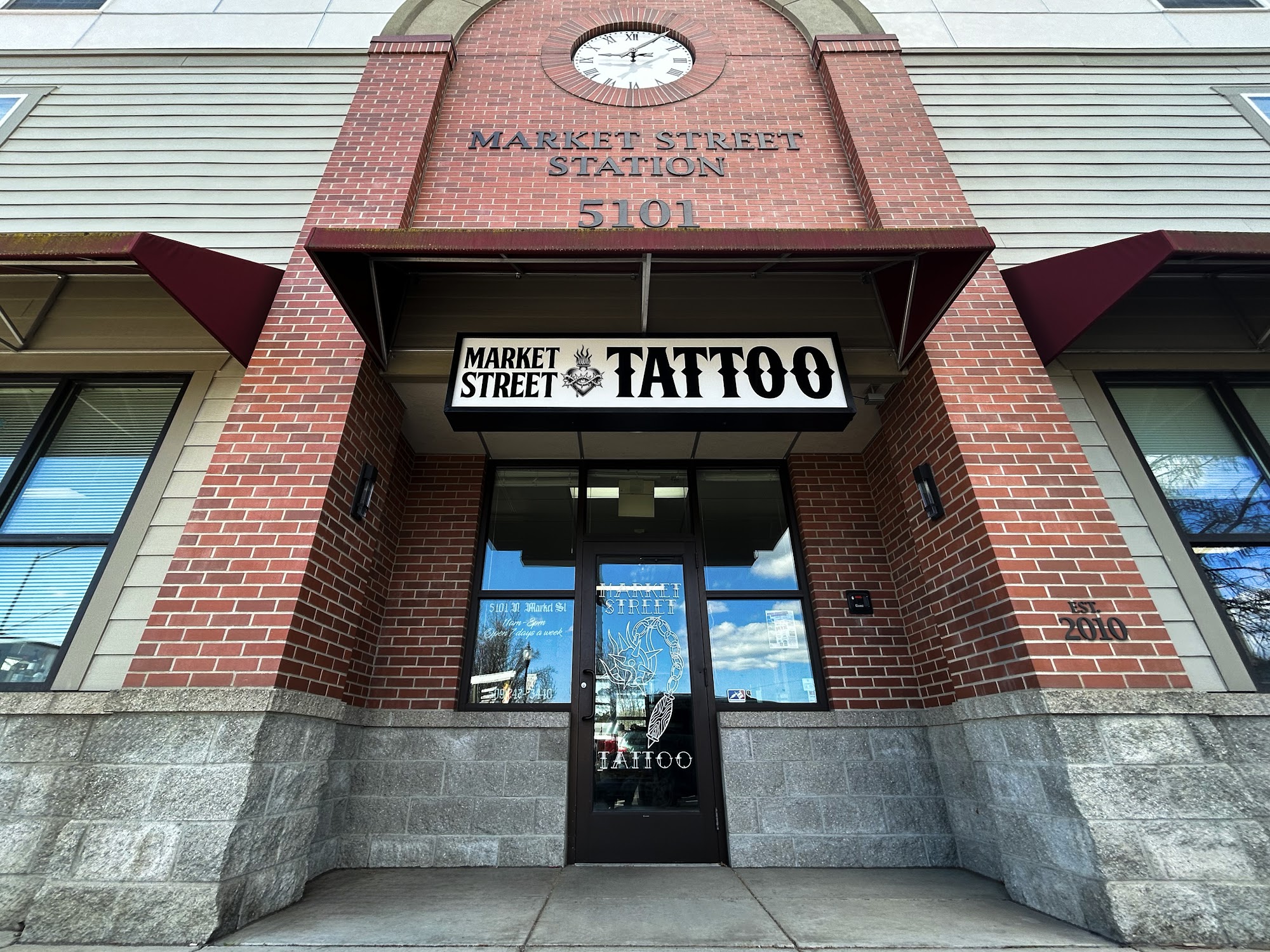 In the heart of Spokane's Historic Hillyard neighborhood, Market Street Tattoo is your premier destination for custom, creative, and unique tattoos. We are a locally owned and operated tattoo shop, with decades of experience. Our talented Spokane tattoo artists offer a variety of tattoo styles, but all take special care and consultation when it comes to our clients' individual needs. We offer a personalized approach to tattooing, and all of our tattoo artists are able to draw and design special creations. Come in for flash designs or custom tattoos. Offering appointments and of course, walk-ins are welcome.
