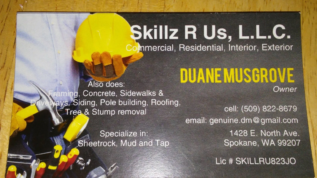 GENERAL CONTRACTOR IN SPOKANE, WA Are you planning an upcoming renovation or room addition project? Call Duane Musgrove at Skillz R US, L.L.C. to streamline the process. Our company provides reliable general contracting services in Spokane, WA, that eliminate the headache that stems from trying to plan out all phases of a project. For years, we've delivered superior results for both residential and commercial customers. While in your home or business we treat it as we would want our own to be treated, with cleanliness and respect, protecting flooring and finishes. We keep the lines of communication open each step of the way, making sure that your vision is becoming a reality. You can write to us at: [email protected]