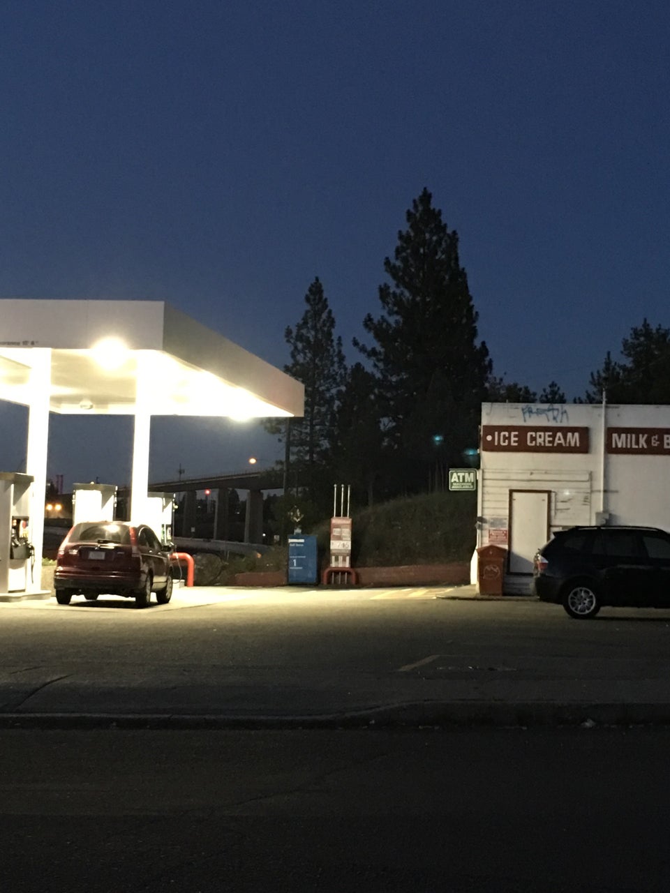 OMG! Do you see it??????It's a Gnome!!!!In front of the gas pump!