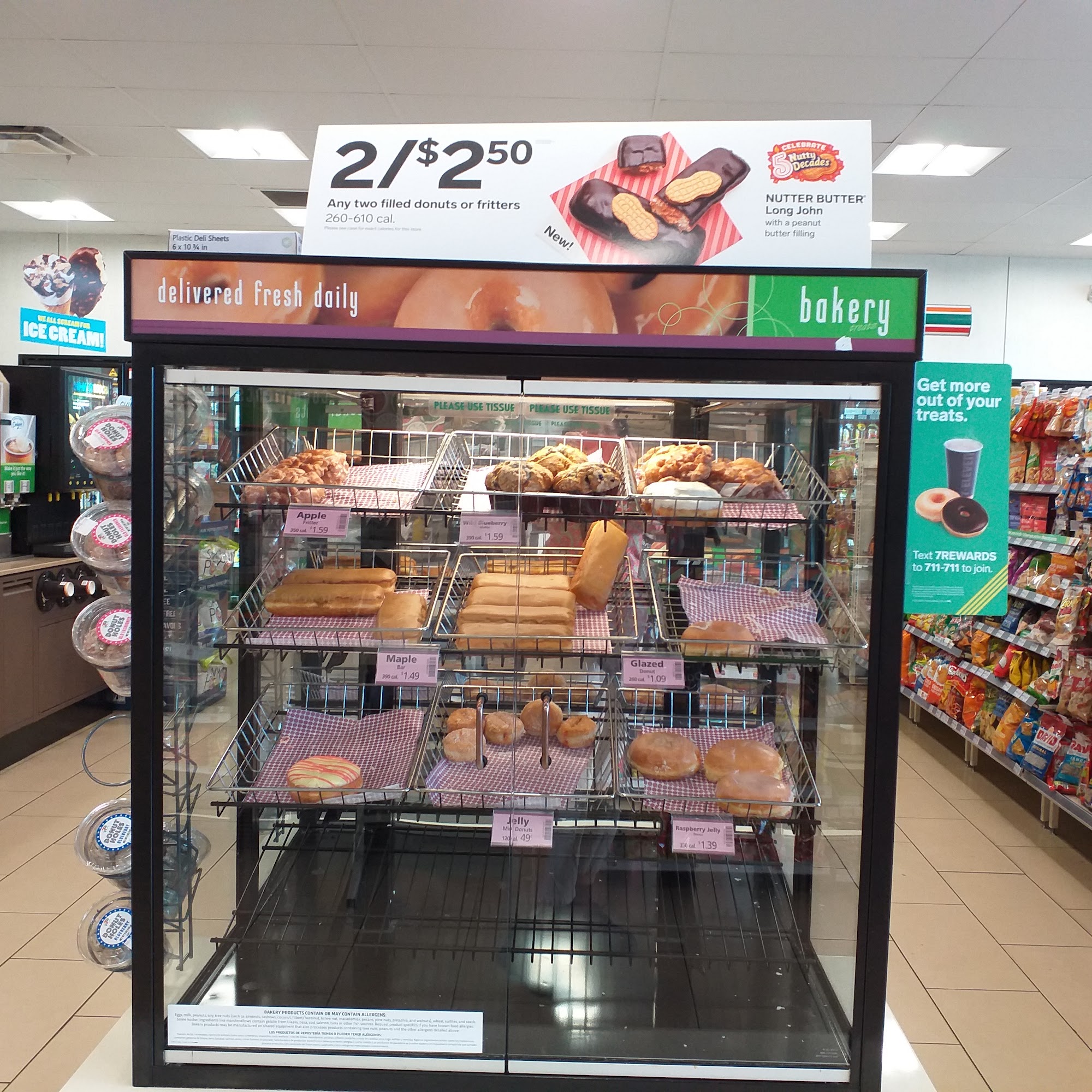 This 7-Eleven is always open, 24/7, providing convenient access to items like drinks, pizza, salads, milk, ice cream, and Advil at any hour. They have an app for specials and redeemable points. The staff receives compliments for being friendly and for making the best pizza, though some find them rude and miss the old customer service. The selection is broad, but they sometimes run out of popular items like pepperoni pizza, while some customers feel other pizza options don't fit the store's aesthetic.