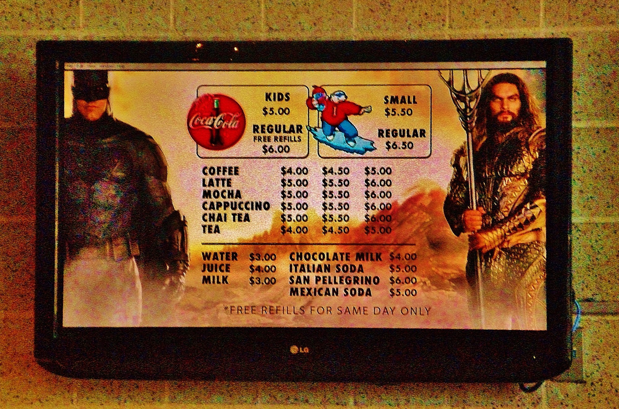Great theater however as will all cinemas way over priced on food and drink, a large soda $9.50. 22 Oz