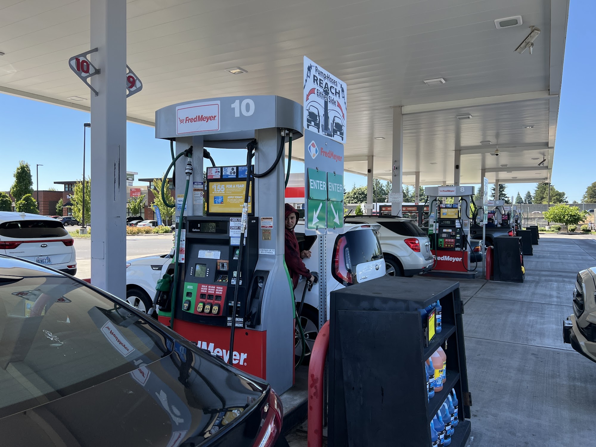 Fred Meyer Fuel Center offers a convenient and friendly experience for customers. Shoppers can earn fuel points by using their Shopper's Card, making it easy to save on gas. The center features the lowest prices in the neighborhood, with many working pumps and no long wait times. Attendants are consistently kind, even when faced with difficult customers. The process is efficient, allowing customers to pay without leaving their cars, and amenities like an air machine for tire inflation are available. Overall, Fred Meyer Fuel Center is highly recommended for quick and hassle-free fuel services.