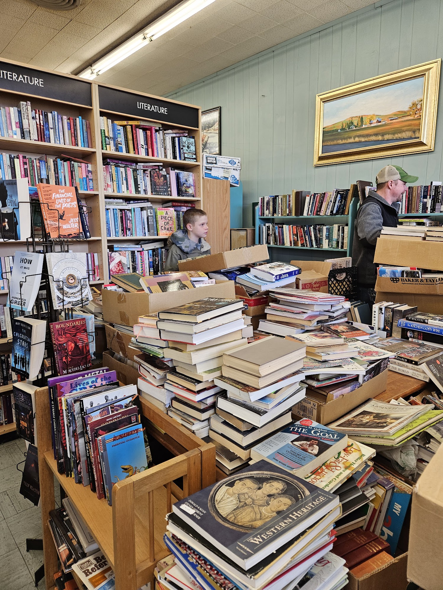 Crowded with lots and lots of books. Tons still in receiving or duplicates boxes on thre floor. Pretty well organized. Helpful & friendly owner willing to answer questions and point out sections.