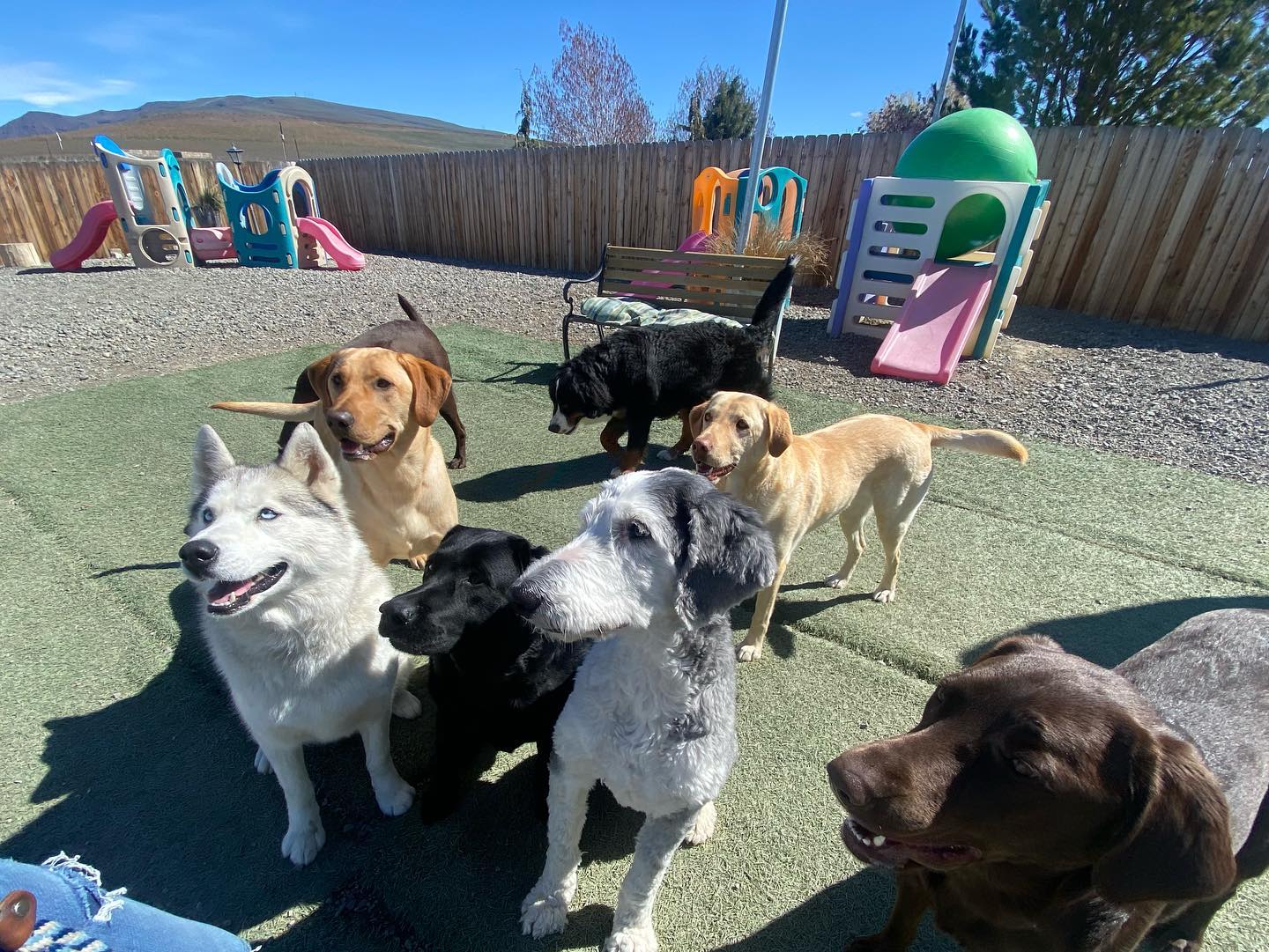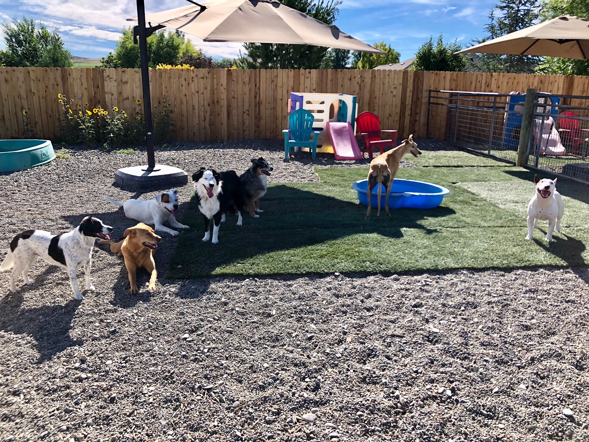 Our mission is to provide exceptional Doogie Daycare and Boarding by giving owners a peace of mind and by providing a safe, clean place for dogs to socialize, play and rest. We provide enrichment activities such as games, puzzles, swimming, novelty items, learning new things and an adundance of personalized attention for each dog in our care. Our small size allows us to spend lots of one-on-one time with the dogs in addition to group play and snuggle time with our older or low energy guest. Boarding guest may participate in all of the activities at no additional cost and enjoy additional time outside each night before bed. Dogs are our passion and we live each day with happy hearts.