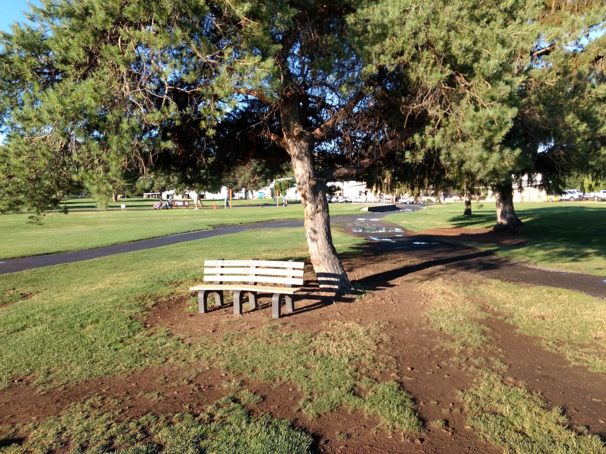 Lovely RV park; views of the lush green golf course enhance the experience. They do need a better dog park; it's only fenced on 3 sides and they need a small dog side and big dog side (I have 2 small dogs and just had an unpleasant experience with a pit bull mix).