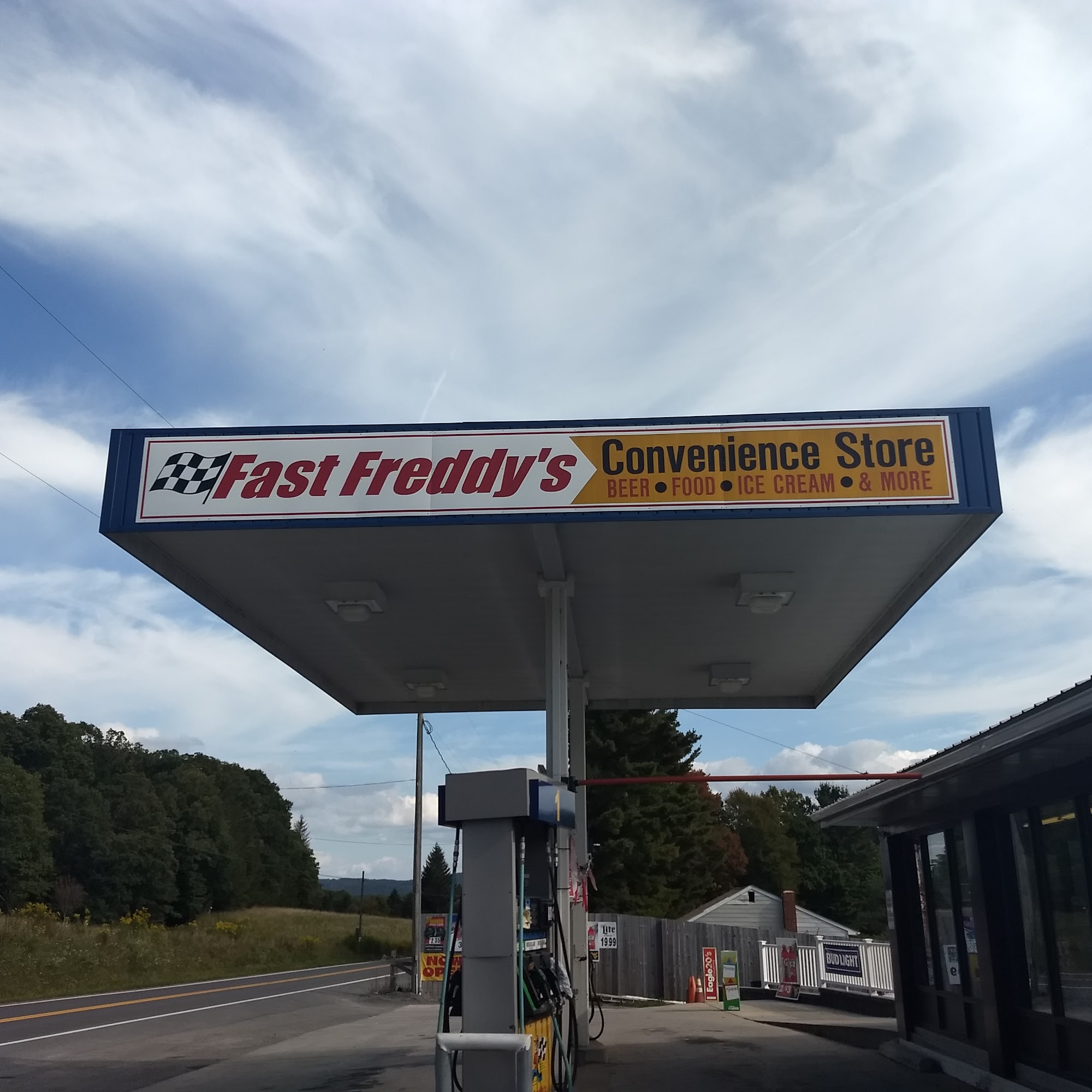 Fast Freddy's LLC is a charming family-owned convenience store located in the countryside. It offers delicious homemade foods, including amazing baked goods like pies and cakes, made by one of the owners. Customers appreciate the friendly service and the cheaper prices for gas and tobacco compared to nearby Oakland. Whether stopping for a snack or refueling, Fast Freddy's is a popular choice for travelers. The store also stocks a variety of beverages, including Michelob Ultra. Overall, it’s a great place to visit for both food and convenience.