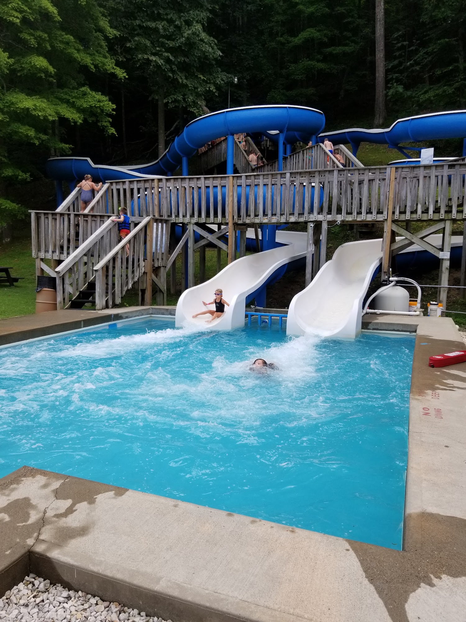 Water Ways is a popular water park located in southern West Virginia, offering a fun outdoor experience for families and visitors. The park features five slides, a swimming area, and a pool that is generally clean and well-maintained, although some areas like the pool could use a little extra attention. It is very busy, with almost every inch of grass taken by sunbathers and families, and offers amenities such as sun coverage, coolers, and chairs. The park has a variety of concessions, including Corn Dogs, Mac & Cheese bites, Fries, and a Sno Cone shack with many flavors. Visitors appreciate the friendly, helpful staff and attentive lifeguards ensuring safety on the slides and in the swimming areas. The park is conveniently located near I64 and Route 119, making it easily accessible. Improvements are ongoing, with daily landscaping and repair updates. Overall, Water Ways provides a fun, affordable outdoor water park experience, with mini golf and shelters available for added entertainment.