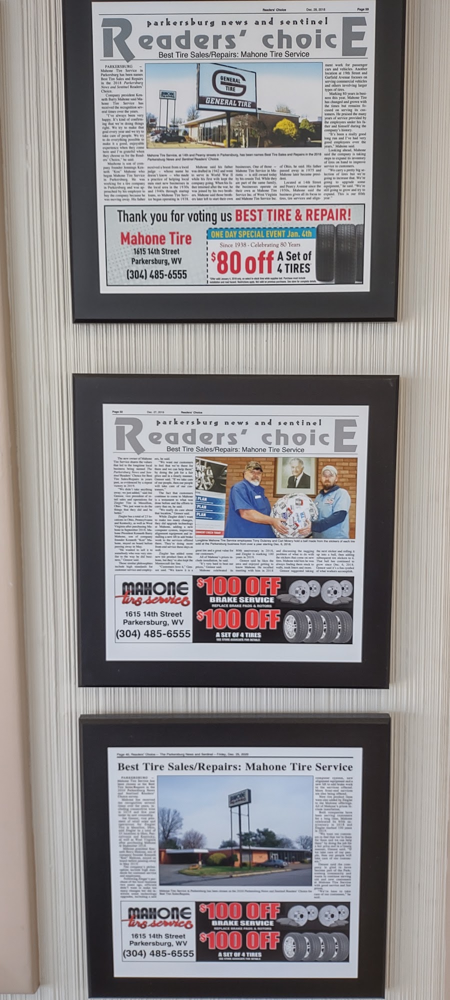 It's always a pleasure dealing with Mahone Tire. Fast, professional service and friendly staff. I've been a customer for over 45 years!