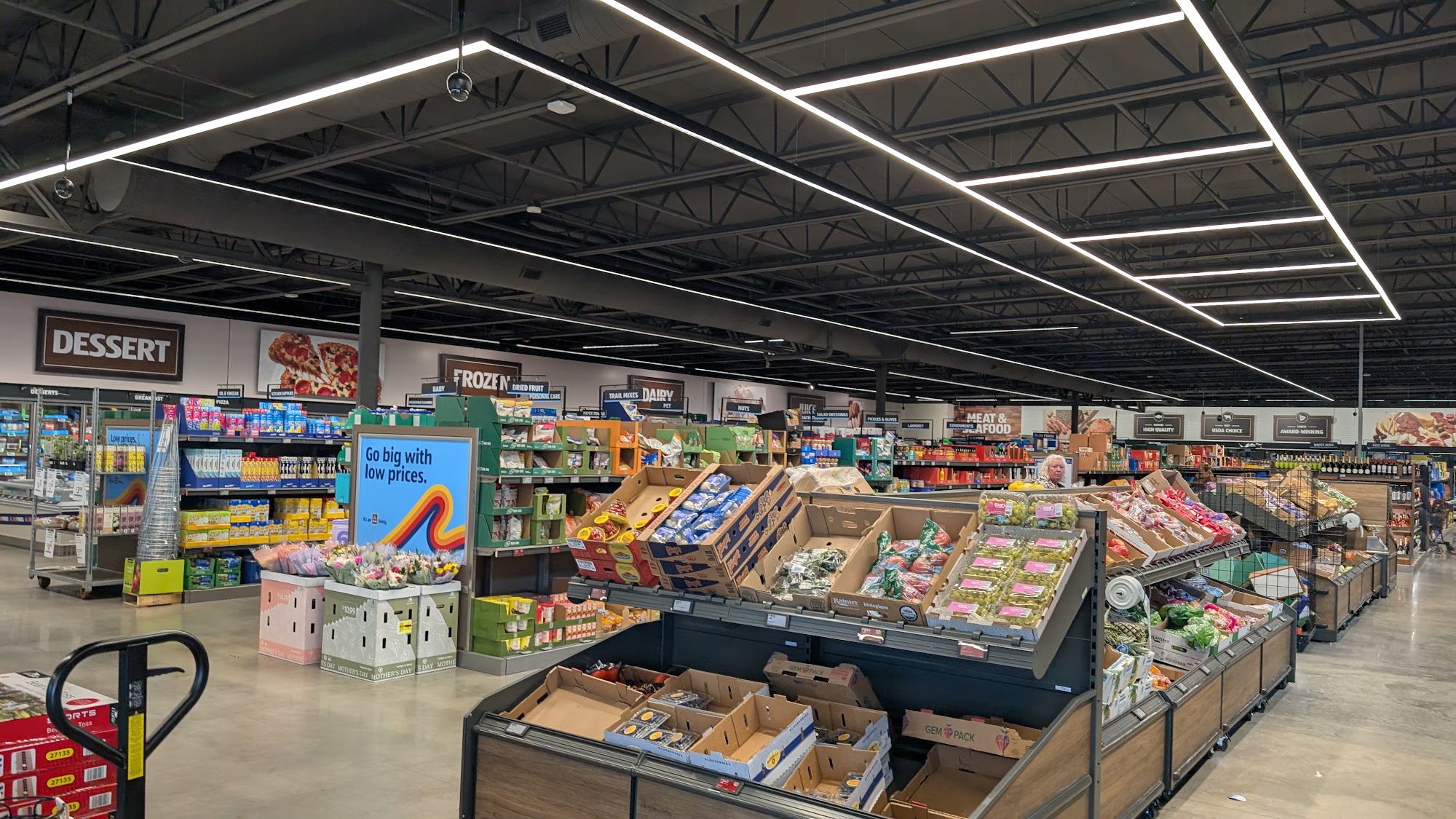 ALDI offers a good selection of fresh produce and baked goods, making it convenient for weekly grocery shopping. The store is well organized, allowing for efficient movement through the aisles. Staff are mostly friendly, although there are some exceptions. The store has a unique vibe, with some good deals on items that are often cheaper than other stores. However, the fresh meat section is small with limited choices. One common issue is long lines at checkout, often with only one cashier open, which can cause wait times. Despite this, shoppers enjoy discovering new goodies and value the affordability.