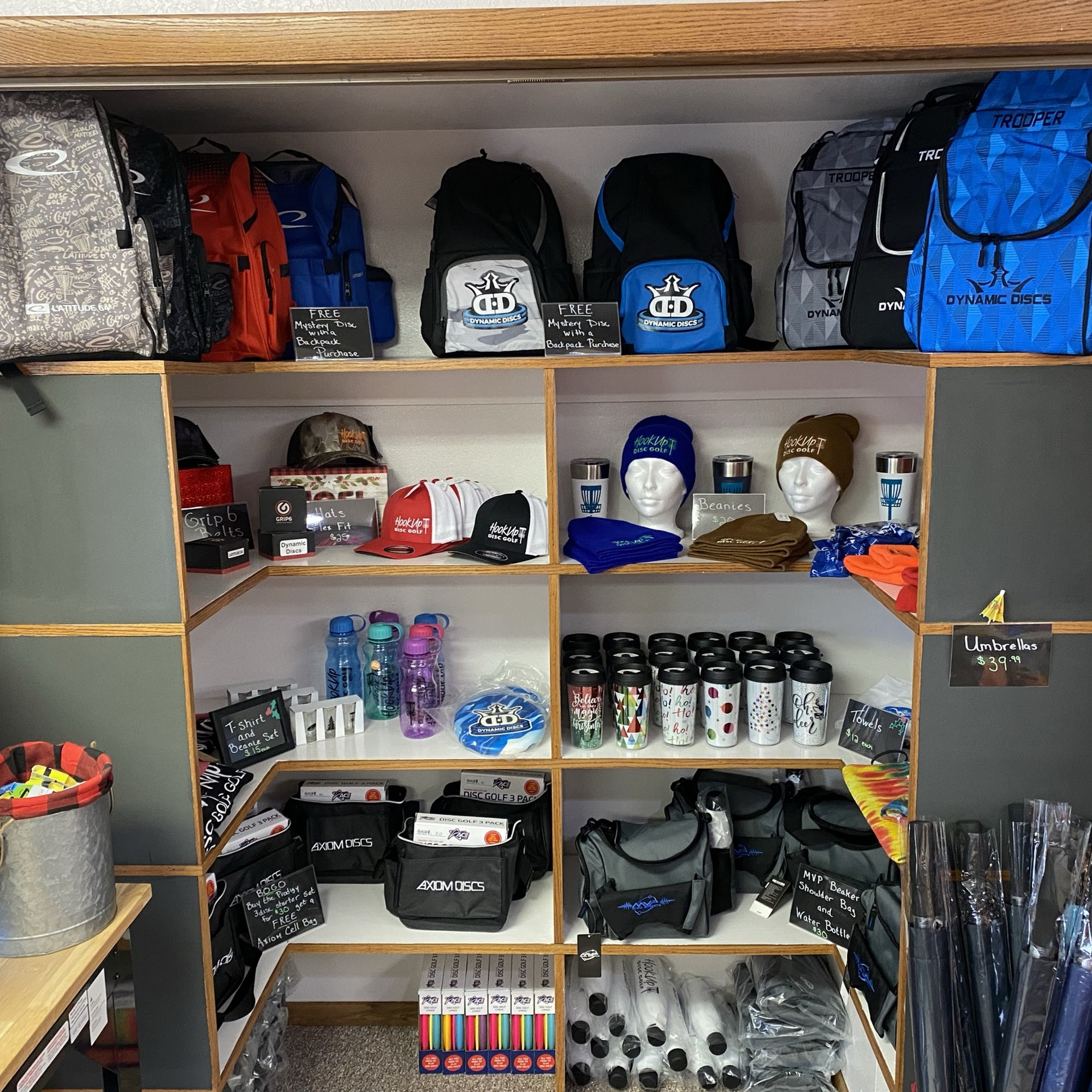 HookUp Disc Golf LLC is a Disc Golf Shop that has everything you need to play disc golf. Dealer for Gateway Disc Sports, Dynamic Discs, Latitude 64, Westside Discs, Prodigy Disc, MVP Disc Sports, Axiom Discs, Streamline Discs, and Discmania. 50x80 indoor Facility for practice. Over 1000 discs in stock