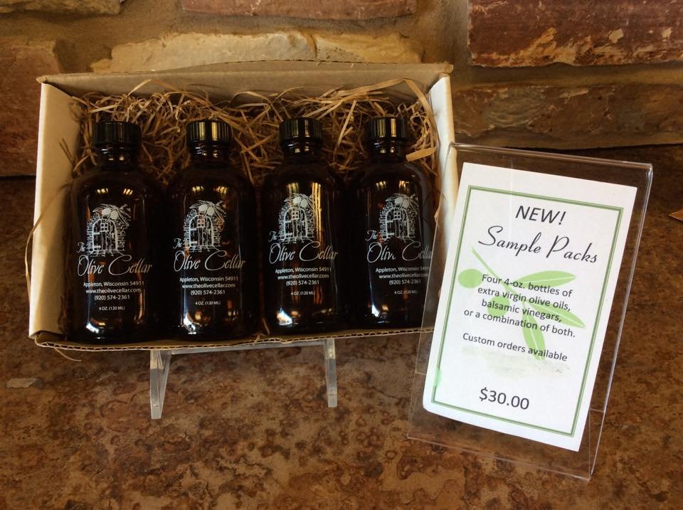 The Olive Cellar in Appleton, Wisconsin offers the best 100% Extra Virgin Olive Oils from around the world. Our oils are cold pressed from only the freshest, tastiest olives. Treat your tastebuds with our exquisite twelve year and eighteen year aged balsamic vinegars, or our delicious flavored vinegar selections like pomegranate, fig, blueberry, and many more! Along with having Wisconsin’s largest selection of delicious oils and vinegars, we also carry an assortment of quality Italian artisan pastas, sauces, olives, wines, spices and much more! We invite you to visit either of our retail stores to taste before you buy any of our oils or vinegars, then watch as your choices are bottled fresh for you! Personalized olive oil bottles and gift