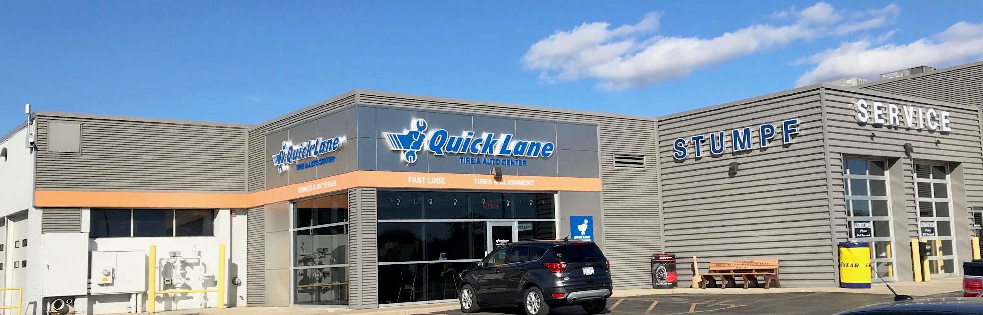 Quick Lane at Les Stumpf Ford provides fast and friendly service. The staff is helpful, knowledgeable, and goes over and above. Customers report not feeling ripped off, with staff honestly stating when something does not need replacing. The body shop is also awesome, with fantastic and helpful workers who can complete minor repairs very quickly without an appointment. While service is fast and the cashier is nice, there have been occasional oversights like forgetting tire stem caps. Overall, the service is really good and many customers are very happy with their experience.