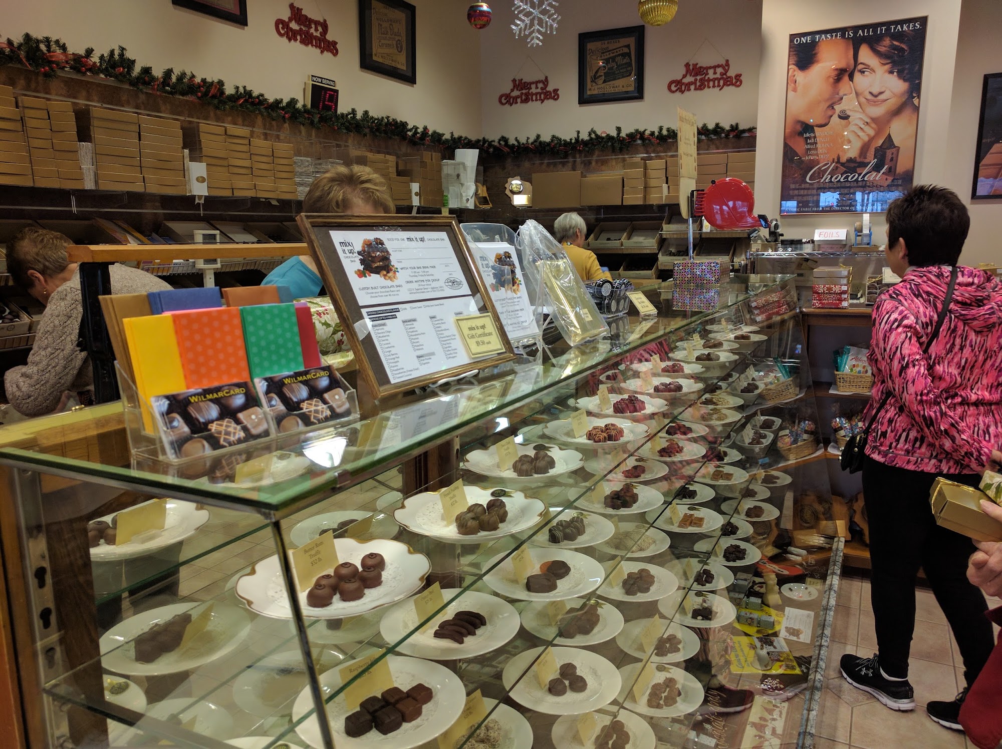A few days before Christmas the place was very busy! The staff was efficient at ringing in purchases. Chocolates purchased were fresh and very good.