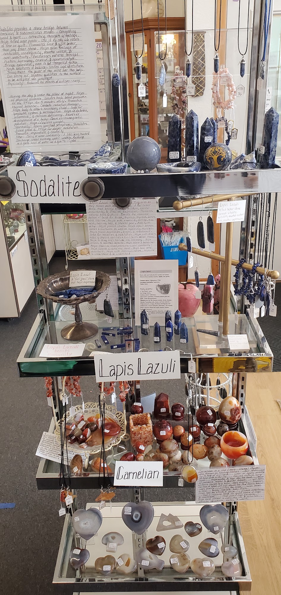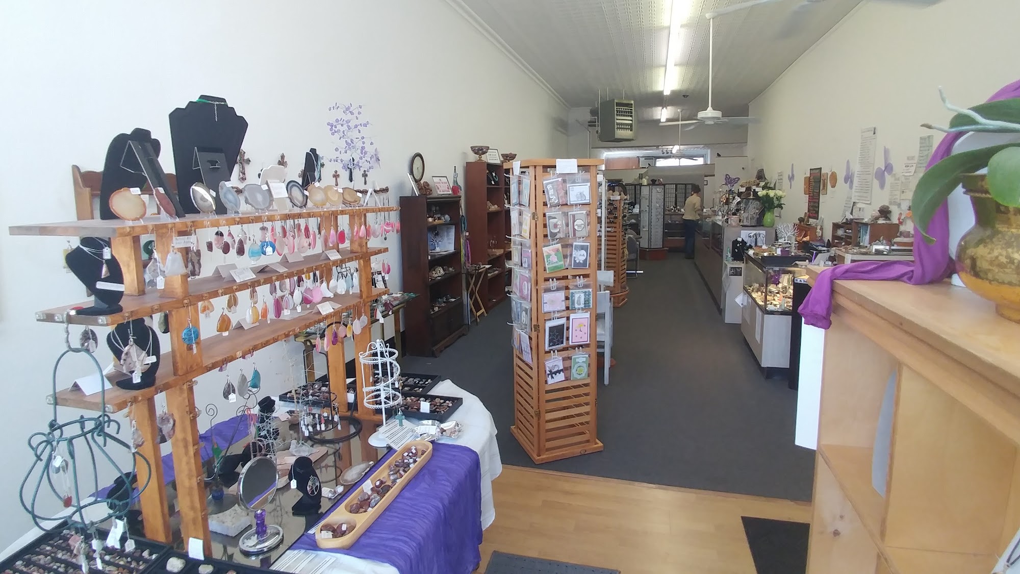 The Rock Shop is a small but impressive store that offers a wide variety of rocks, minerals, crystals, and fossils. Customers can find stones, palm stones, pendulums, obelisks, spheres, clusters, carved stones, and jewelry made by local artists. The shop also provides educational classes on topics like Reiki, chakras, stones, crystals, colors, tea, and henna, along with Make & Take classes for wire wrapping and bracelet making. Additionally, services such as tarot, animal card readings, and past life regression are available by appointment. The owner is known for being friendly, knowledgeable, and helpful, creating a calm and welcoming atmosphere. Many reviews praise the shop’s large selection and good prices, with some noting the owner's tendency to discuss crystal healing, which can be either endearing or a bit much. Overall, The Rock Shop is highly recommended for its unique items, helpful staff, and relaxing vibe.