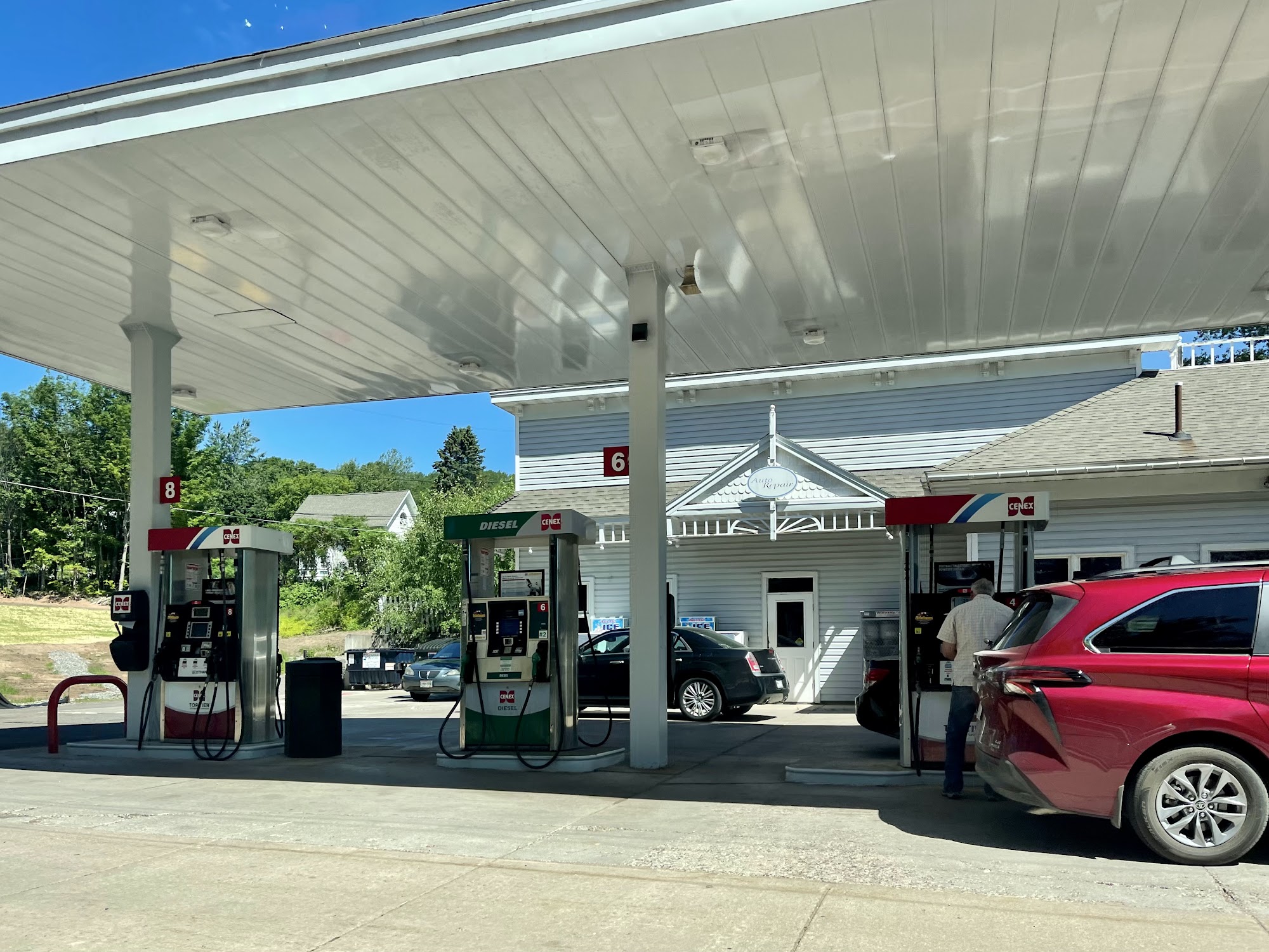 Quick easy in and out convience store usually have a gas pump available so usally no waiting on gas. Have your normal c-store products