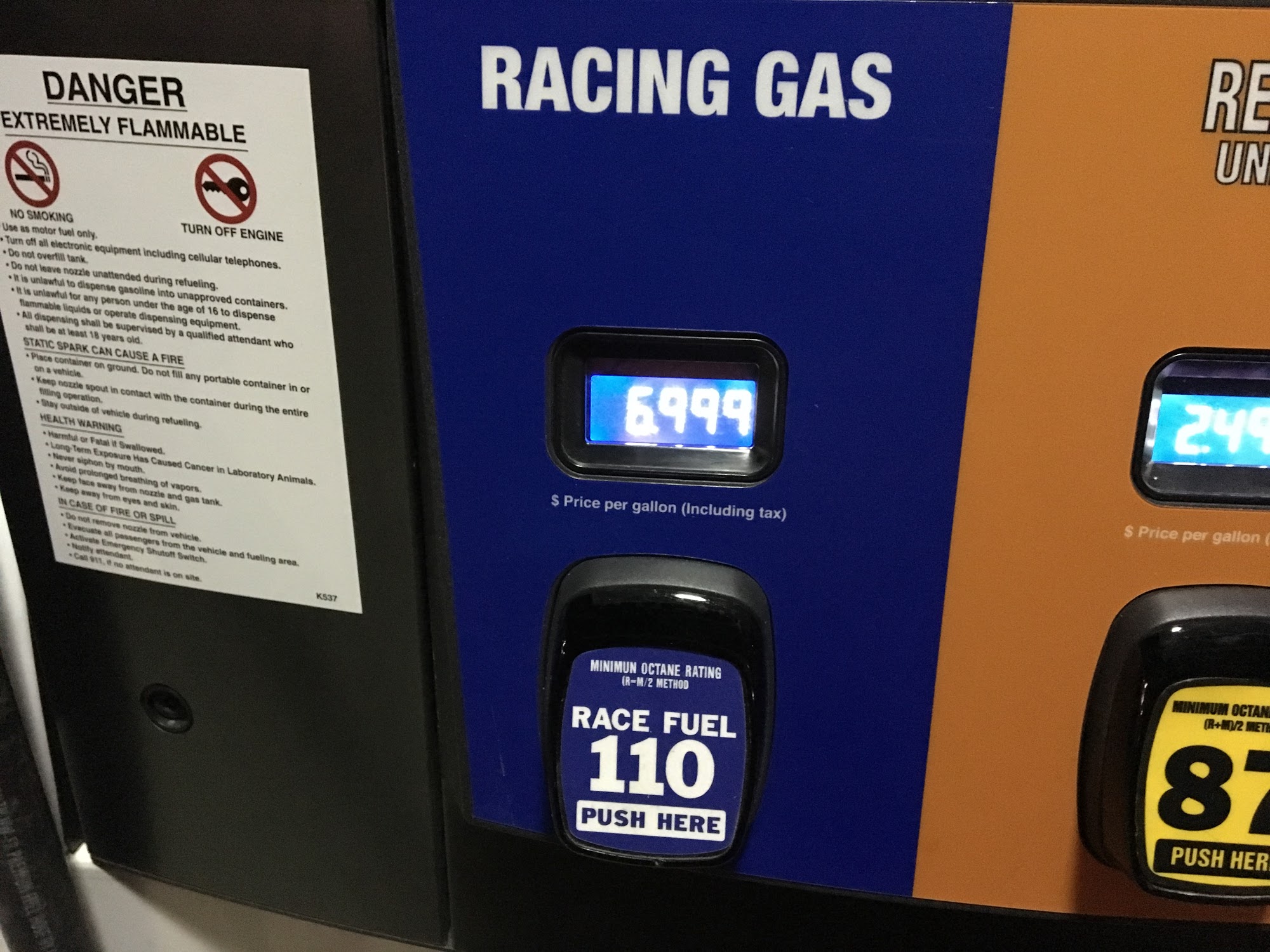 buddy got some 110 race gas there last week. smells bad varnish old bike wouldn't run on it.. dumped it out put premium in runs fine.. for 10$ a gallon I'd expect gold.