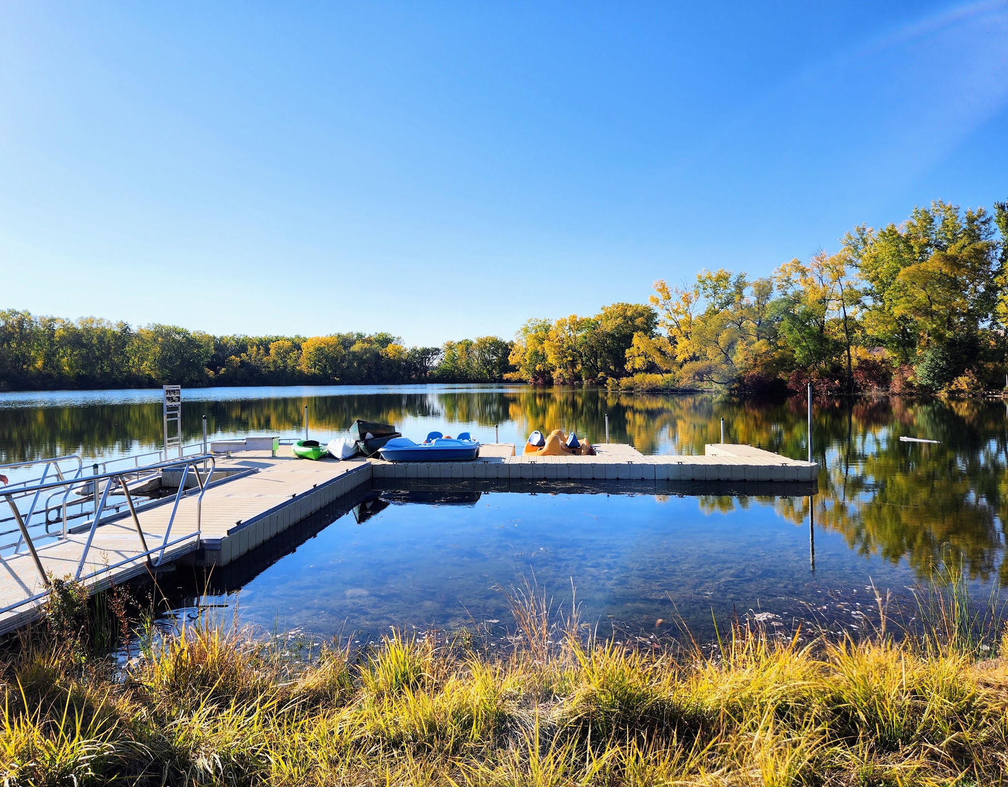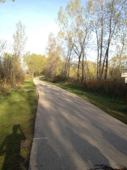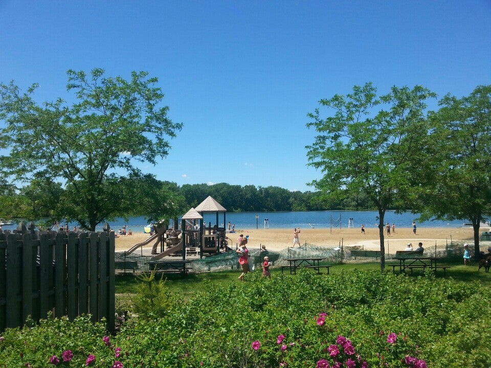 Love this park! There's a sandy beach for people to swim/kayak/canoe/paddleboard, a dog swimming area, a loop that's about 1 mile long with trails branching off, a pavilion with an outdoor volleyball court, and a playset for kids. Beautiful gem of a park