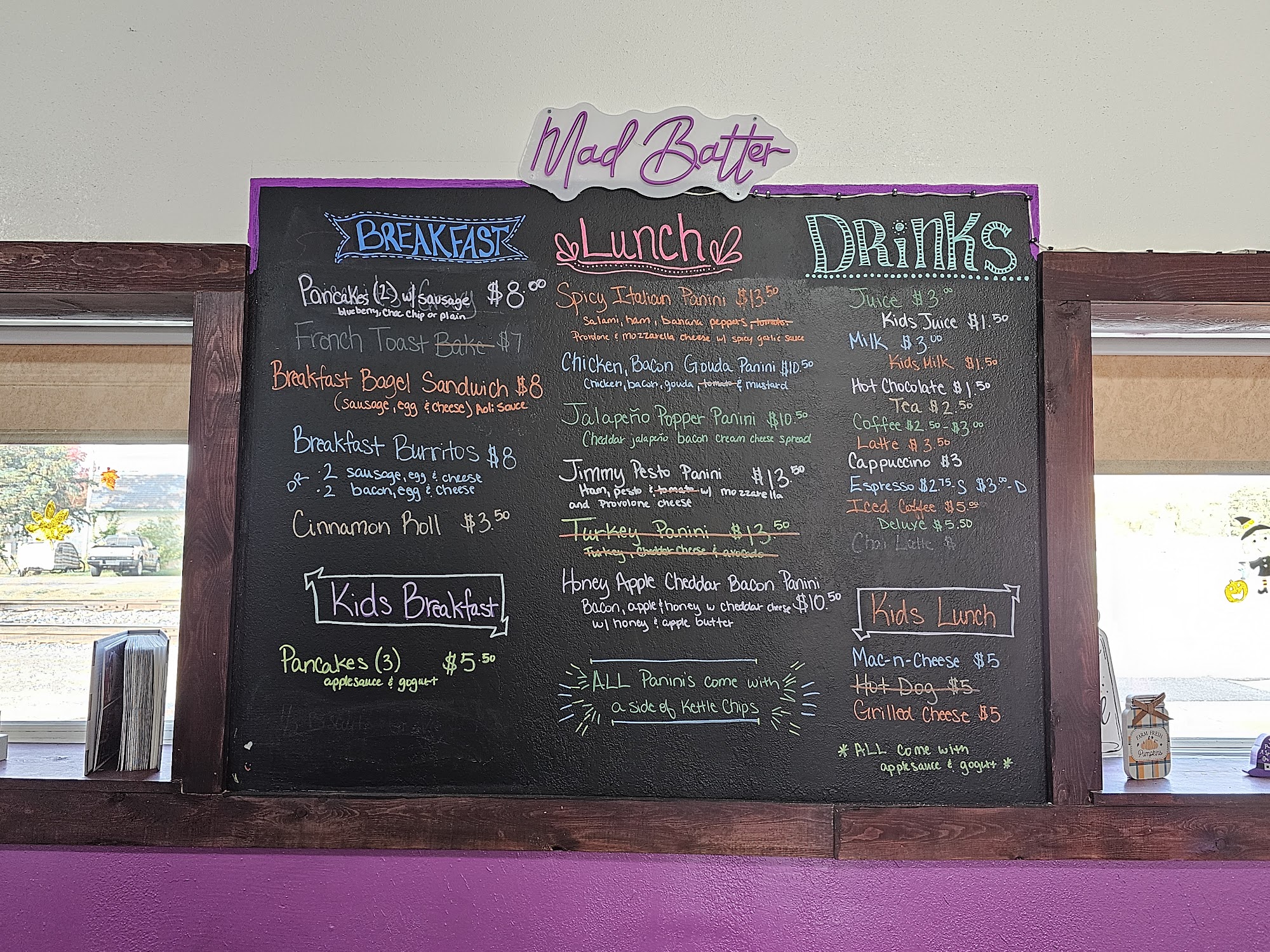 Love the Alice in Wonderland decor! But love the cooking even more. The bakery items are as good as they look. I had an Apple cheese bacon panini today that I will order again. Lovely crisp apple slices with melted cheese, crisp bacon and perfect toasted bread.