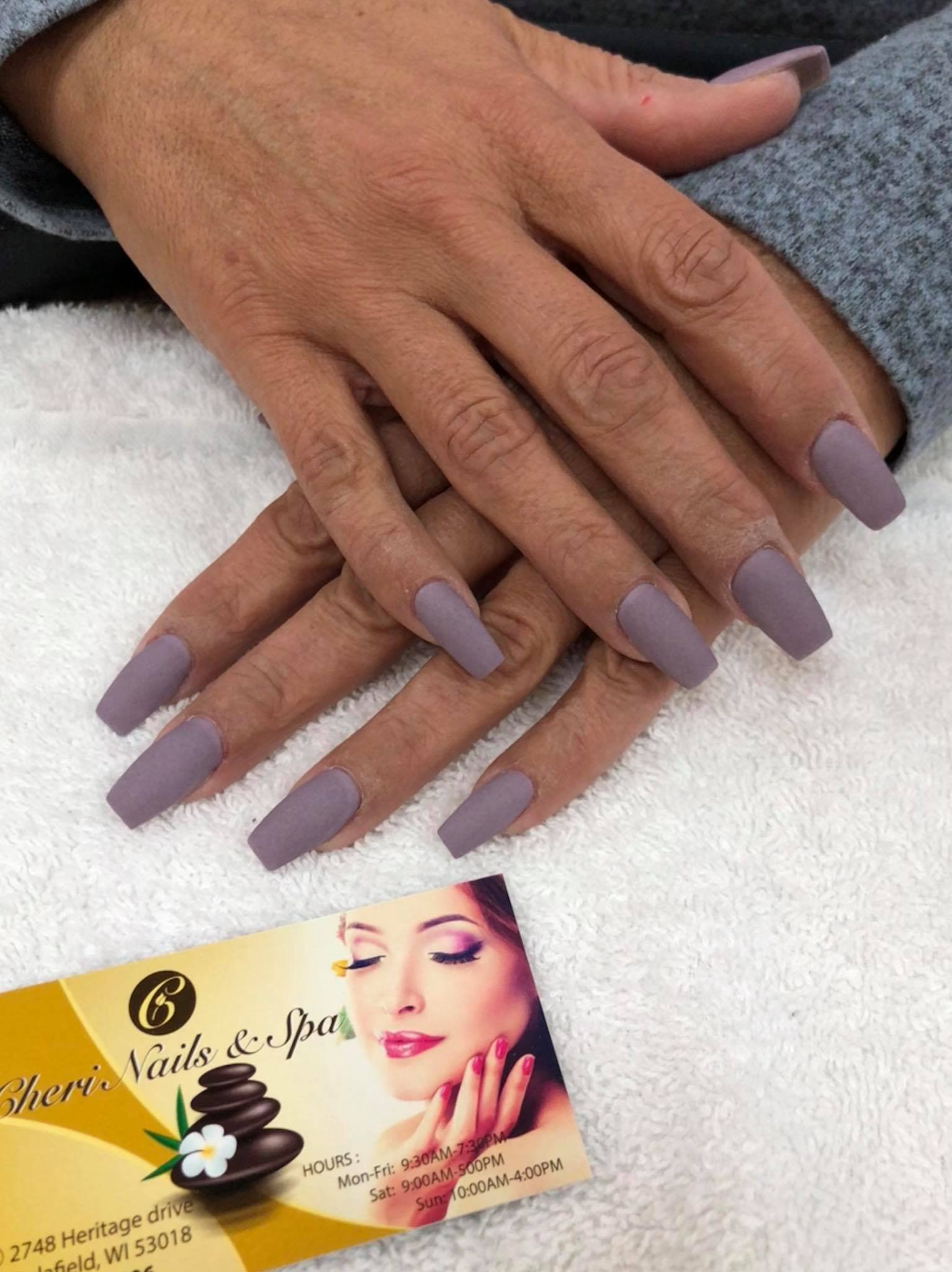 Cheri Nails And Spa in Delafield, WI is a nail salon and spa that prioritizes customer safety, needs, and satisfaction. They offer a variety of nail care services including manicures, pedicures, and dipping powder, using high-quality products. The friendly and highly skilled staff is dedicated to providing a positive experience. Customers appreciate the technicians' care and attention to detail, with many praising Linda for her fantastic work. The salon is particularly popular for its kid-friendly pedicures, featuring cute designs for children. Customers have noted the value of the $32 basic pedicure, which includes great nail cleaning, trimming, and a nice foot scrub and massage. Many have had multiple visits for manicures, both gel and dip, and always leave happy with their choices. While nail art is listed as a service, customers suggest calling ahead to confirm availability as it may not always be offered.