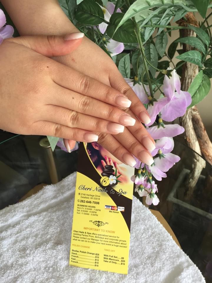 Cheri Nails and Spa is a top-notch nail salon and spa in Delafield, WI 53018. We focus on our customer safety, needs, and satisfaction. We provide you with a variety of nail care services such as Manicures, Pedicures, and Dipping Powder together with a large selection of high-quality products for valued customers to choose from. As you enter Cheri Nails and Spa you are greeted by our friendly staff that is highly skilled Nail Technicians, devoted to your personal care and complete satisfaction, rejuvenating your feet and hands. Come to us now and enjoy the luxury moment!