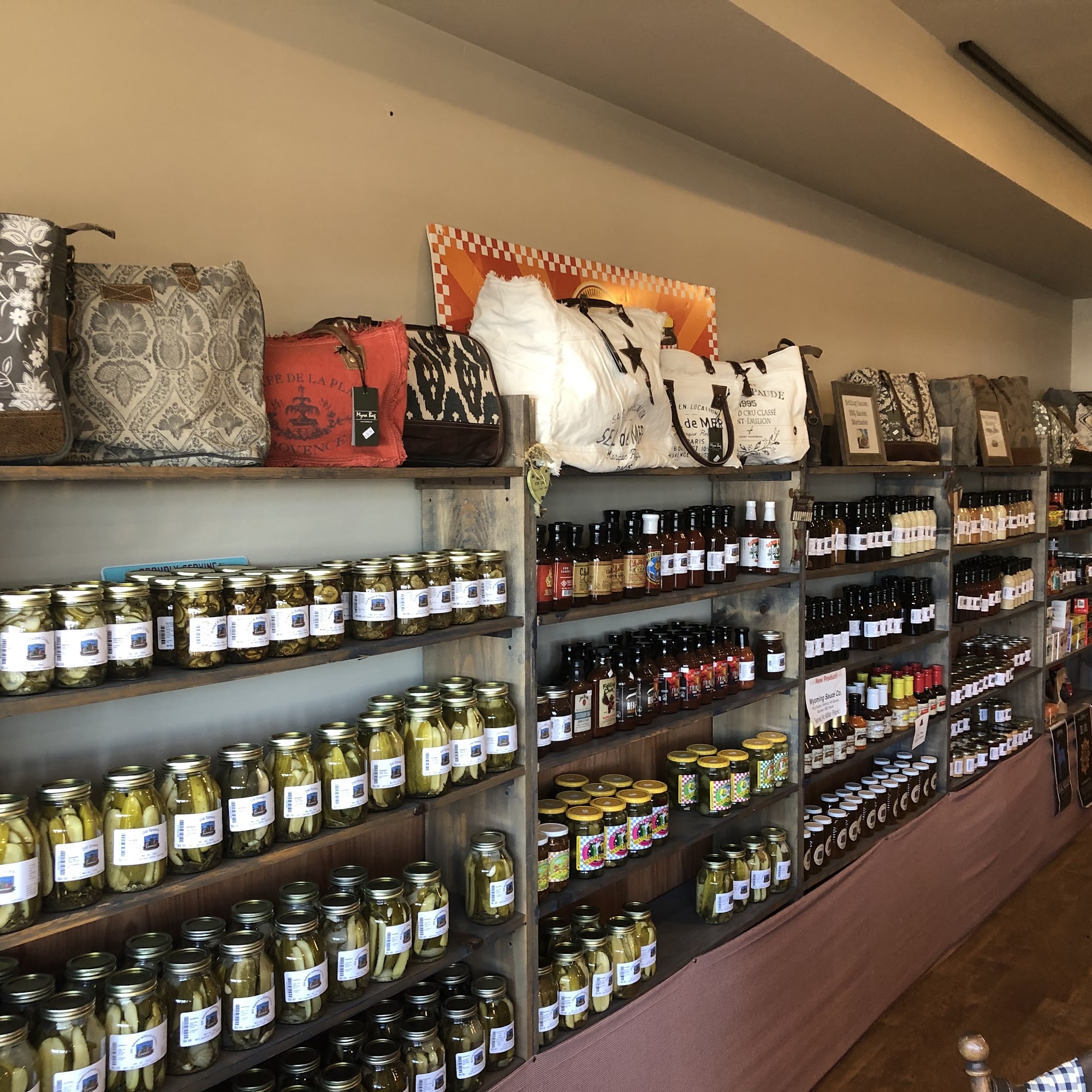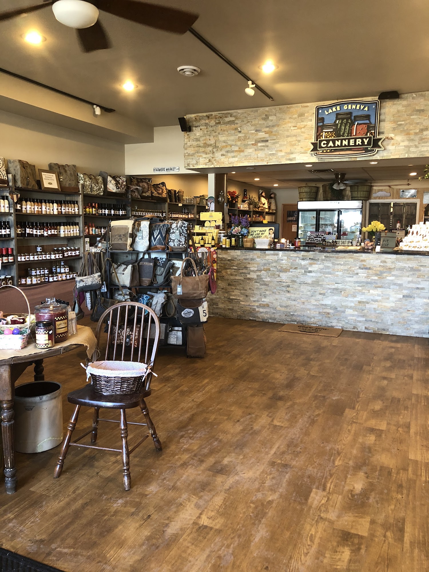 Lake Geneva Cannery is a charming store known for its fresh, homemade pies and a wide variety of locally made and homemade products. Visitors are greeted with the inviting aroma of baked goods, especially their fresh fruit pies, which are baked daily and are considered some of the best around. Cream pies made with fresh whipped cream are available upon request, and the pies are often described as delicious and irresistible. The store also offers an extensive selection of spices, sauces, jellies, jams, and pickles, including no-sugar options and specialty items like BBQ sauces and salad dressings reminiscent of grandma’s recipes. Visitors can enjoy Milwaukee’s Colectivo coffee ground fresh and loose teas, along with a large selection of Myra handbags, Young Living essential oils, and Candleberry candles from Kentucky. The friendly and personable staff, especially the owner, make shoppers feel welcome and appreciated. The store’s atmosphere evokes holiday baking scents, creating a warm and inviting experience. Whether stopping by for a slice of pie or exploring their local honey, preserves, and canned goods, customers often leave impressed and eager to return. Lake Geneva Cannery is a must-visit destination for authentic homemade treats and unique local products.