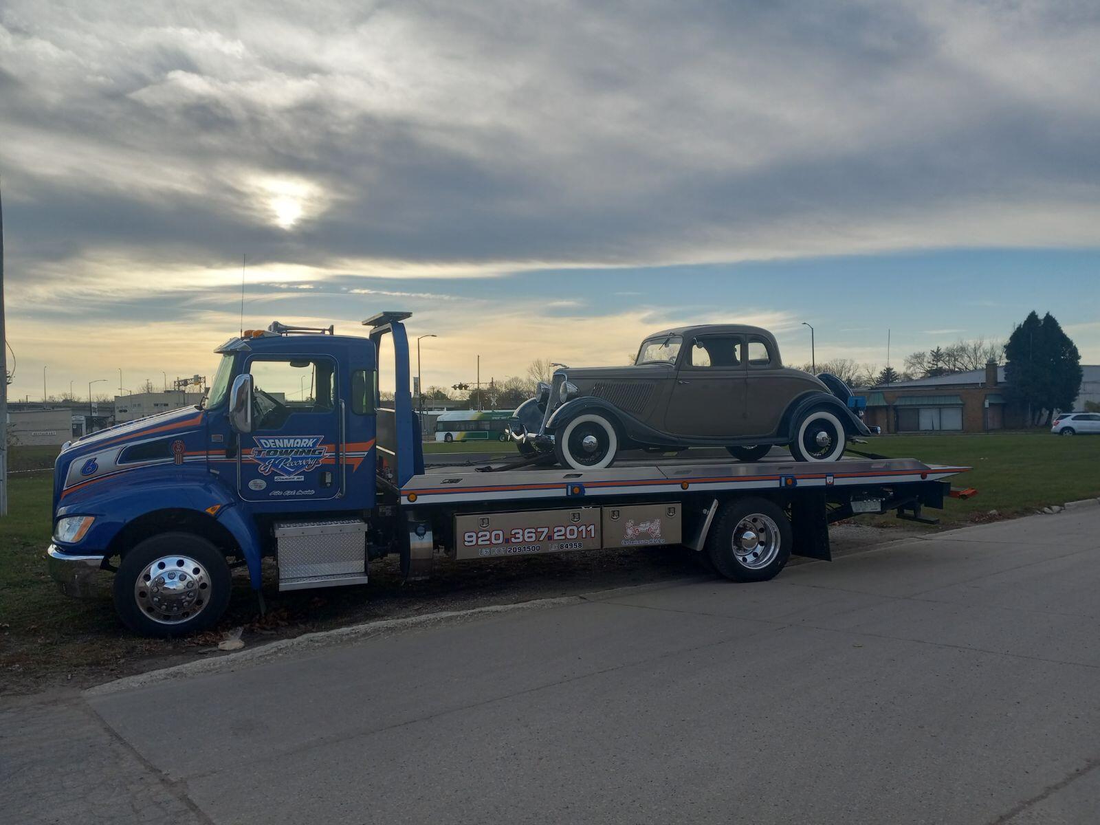 Denmark Towing & Recovery, L.L.C., in Denmark, WI, is the area's leading towing specialist serving Denmark and all surrounding areas for over 30 years. We're fully insured, family owned and our owner is present on every service call. We offer pullouts, wrecker service, towing, gas delivery, roadside assistance, jump-starts and more. For all your towing needs, contact Denmark Towing & Recovery, L.L.C. in Denmark.
