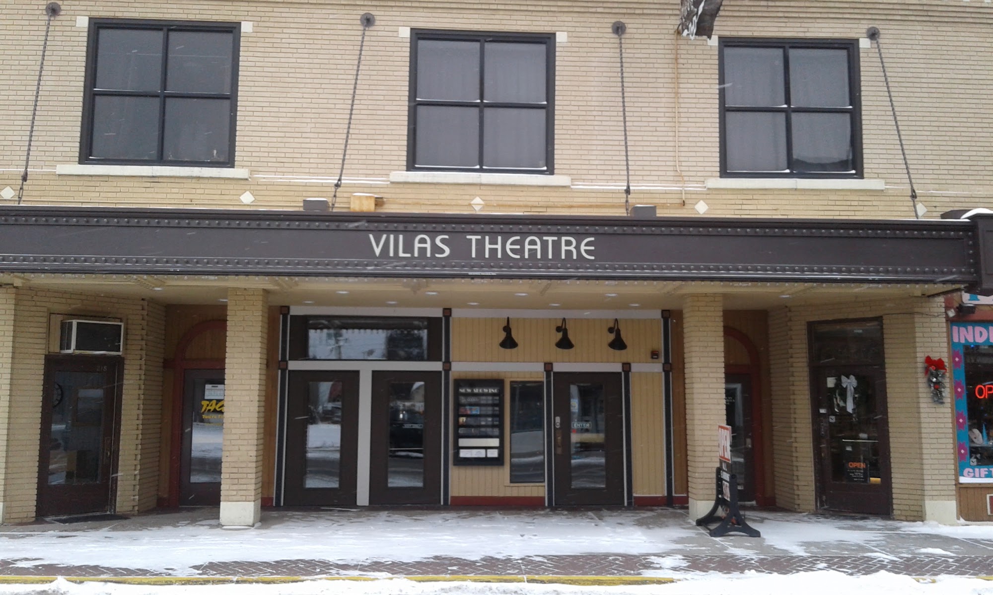 Vilas Cinema is a clean, small town theater located downtown. The owner and staff are very nice, friendly, personable, thoughtful, and go above and beyond. The theater makes you feel right at home. It serves delicious popcorn, good soft drinks, and has a beer and wine menu. The seats are described as old but plush and comfortable. The theater could use some updates, as it lacks modern recliners. Parking can sometimes be tricky out front but is never far. Special offers like senior day discounts are available. It is a highly recommended spot for both locals and visitors.