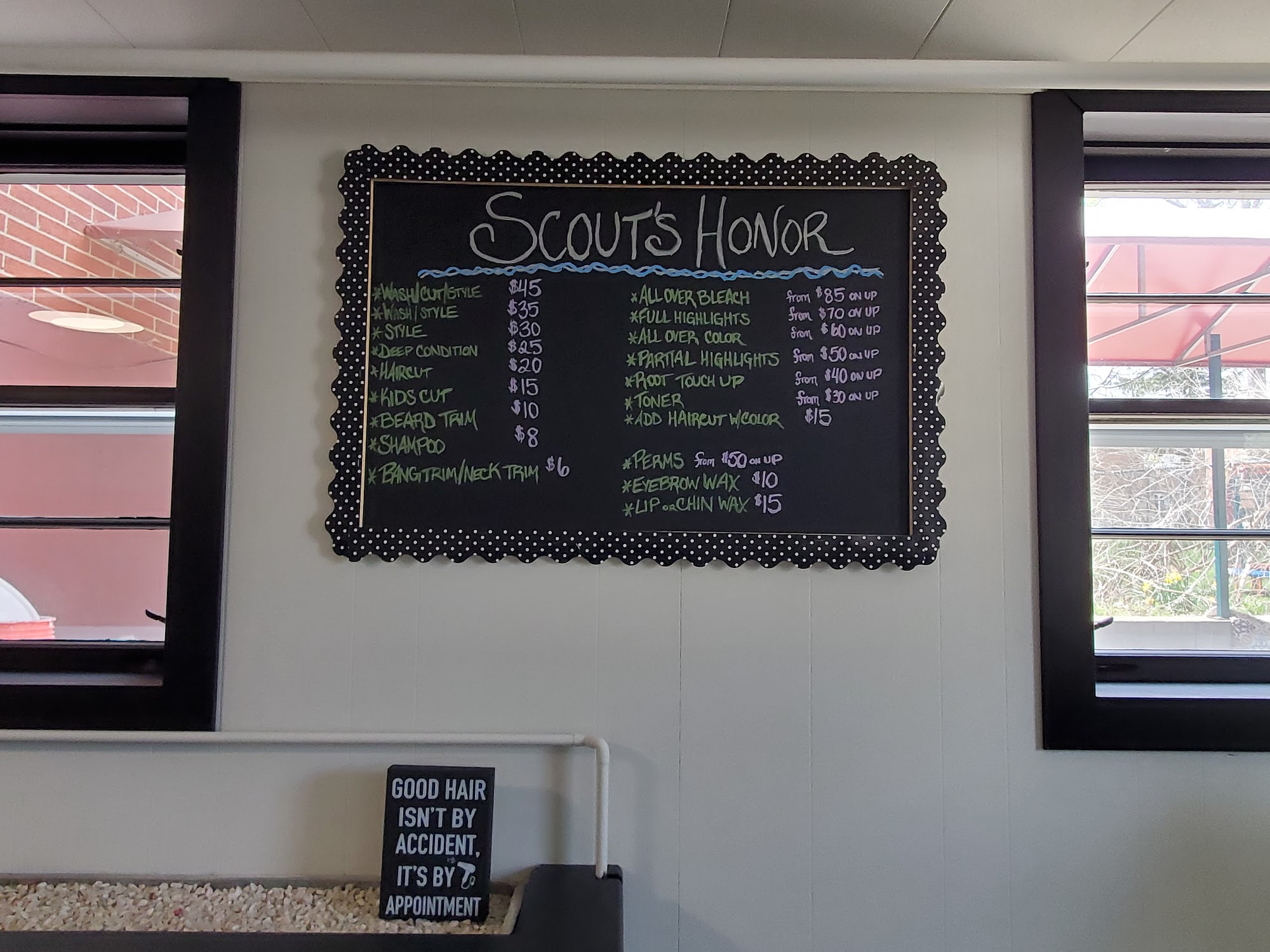 Scout's Honor is a premier beauty salon located in Edgerton, WI, and serving the greater surrounding area. Established in 2022, our salon specializes in hair services for men, women, and children, including haircuts, color treatments, wash and style services, eyebrow waxing, and beard trimming. Our team of skilled professionals is dedicated to providing exceptional, personalized services in a welcoming and relaxing atmosphere. At Scout's Honor, we prioritize client satisfaction and strive to help our customers look and feel their best. Visit us for a transformative salon experience that embodies trust, integrity, and top-notch beauty services.